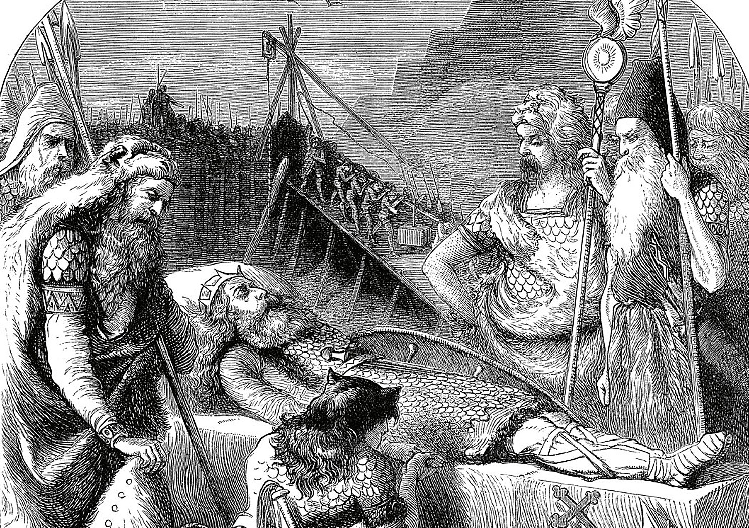 Tam złożyli ciało króla wraz z ogromnym skarbem wyniesionym z Wiecznego Miasta. Do grobu trafiły m.in. przedmioty zrabowane wcześniej przez Rzymian w Świątyni Jerozolimskiej, w tym ogromna menora. Po uroczystościach rzece przywrócono stary bieg, a niewolników, którzy przy tym pracowali, zamordowano, aby zatrzeć ślad.