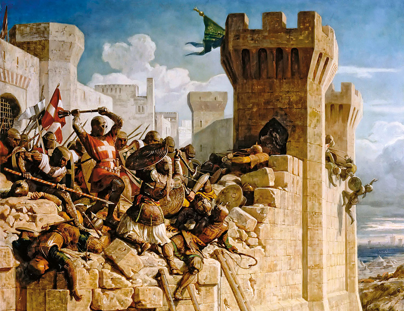 Władza Franków w Outremer (Zamorzu, jak nazywano w Europie państwo krzyżowców), pośród muzułmańskiej większości, opierała się na sieci twierdz rozwijanych i wzmacnianych przez pokolenia. Przez niemal 200 lat istnienia Królestwa Jerozolimskiego w sztuce fortyfikacyjnej trwał nieustanny wyścig. Zamki o prostych murach wyewoluowały w twierdze tak potężne i po mistrzowsku zaplanowane jak słynny (ale nie jedyny) joannicki Krak des Chevaliers. Zmieniały się też metody ich zdobywania – długotrwałe blokady i krwawo odpierane szturmy zastąpiono przemyślanymi działaniami saperów i ostrzałem coraz efektywniejszej artylerii mechanicznej.