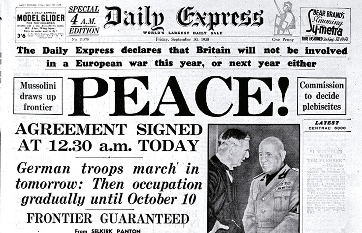 Na odjezdne Chamberlain przekonał jeszcze Hitlera do deklaracji, w której obie strony obiecały, że „nigdy nie będą już toczyć wojny”. Po powrocie na londyńskie lotnisko Heston brytyjski premier wyciągnął kartkę z tą deklaracją, zamachał nią i stał się historycznym memem – funkcjonującym do dziś symbolem appeasementu, polityki ustępstw wobec agresora, podbitej fałszywą nadzieją, że jeśli tylko zaspokoimy jego żądania, to zostawi nas w spokoju. Od tej pory miano „nowego Chamberlaina” zyskiwał każdy niemal polityk, który tchórzył i zgadzając się na ustępstwa, ośmielał agresora.