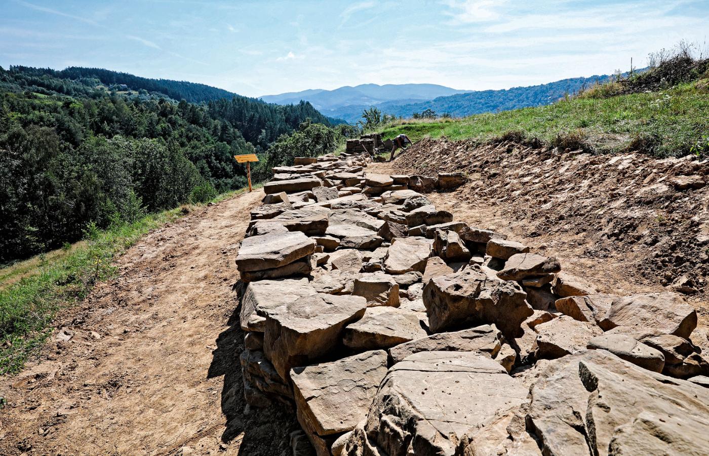 Najstarszy kamienny mur w Polsce wybudowano ok. 1700 r. p.n.e. (czyli w czasie, gdy Babilonem władał Hammurabi) na szczycie Góry Zyndrama w dolinie Dunajca. Grube kamienne bloki, ułożone jeden na drugim bez zaprawy, otaczały osadę liczącą 25 domów i zamieszkaną przez mniej niż 200 osób. Wyjątkowość tej konstrukcji polega na tym, że ani na ziemiach polskich, ani w ogóle w Europie Środkowej tamtego okresu nie ma śladu po kamiennych fortyfikacjach.