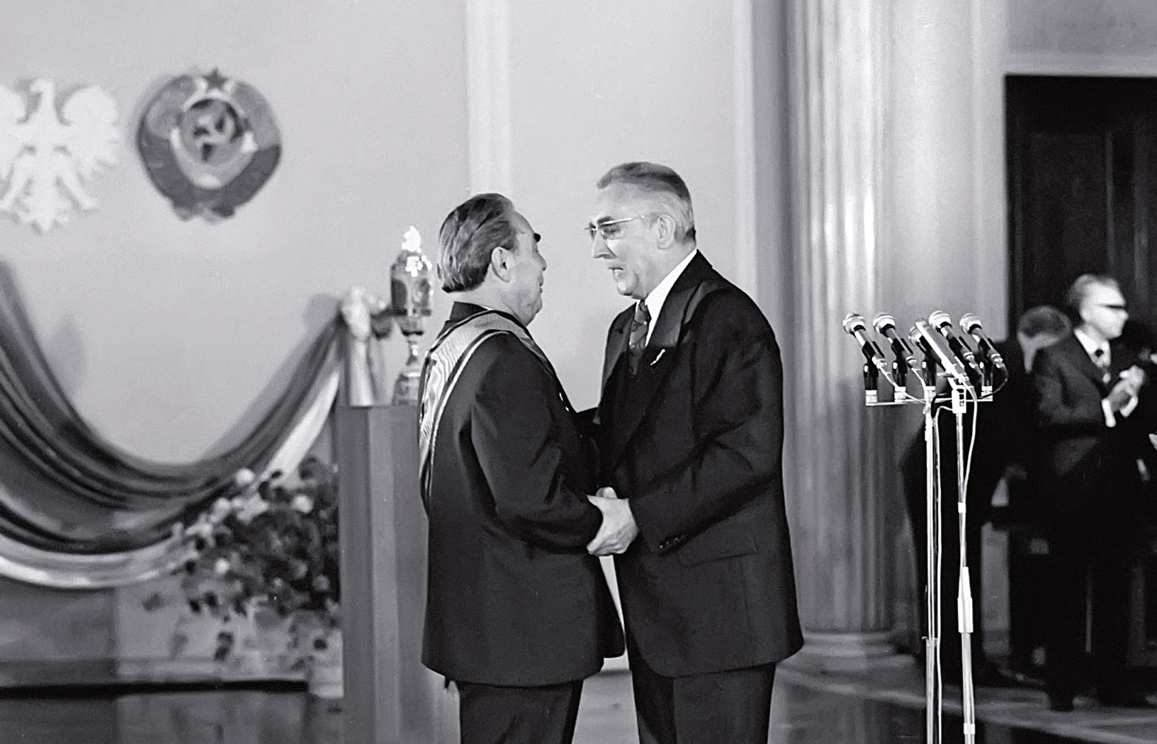 W „Trybunie Ludu” relacjonującej wydarzenie, które odbyło się 21 lipca w Sali Kolumnowej Sejmu, czytamy: „Następuje uroczysty moment – Edward Gierek dekoruje Leonida Breżniewa Krzyżem Wielkim Orderu Virtuti Militari. Serdeczny uścisk. Rozlegają się oklaski. Leonid Breżniew serdecznie dziękuje za odznaczenie”. Organ PZPR nie wspominał jednak o tym, co zanotował Mieczysław F. Rakowski w swych „Dziennikach”, otóż Breżniew, dziękując za odznaczenie, najzwyczajniej w świecie się rozbeczał. Zresztą płakał już podczas dekorowania go wspaniałą wstęgą.