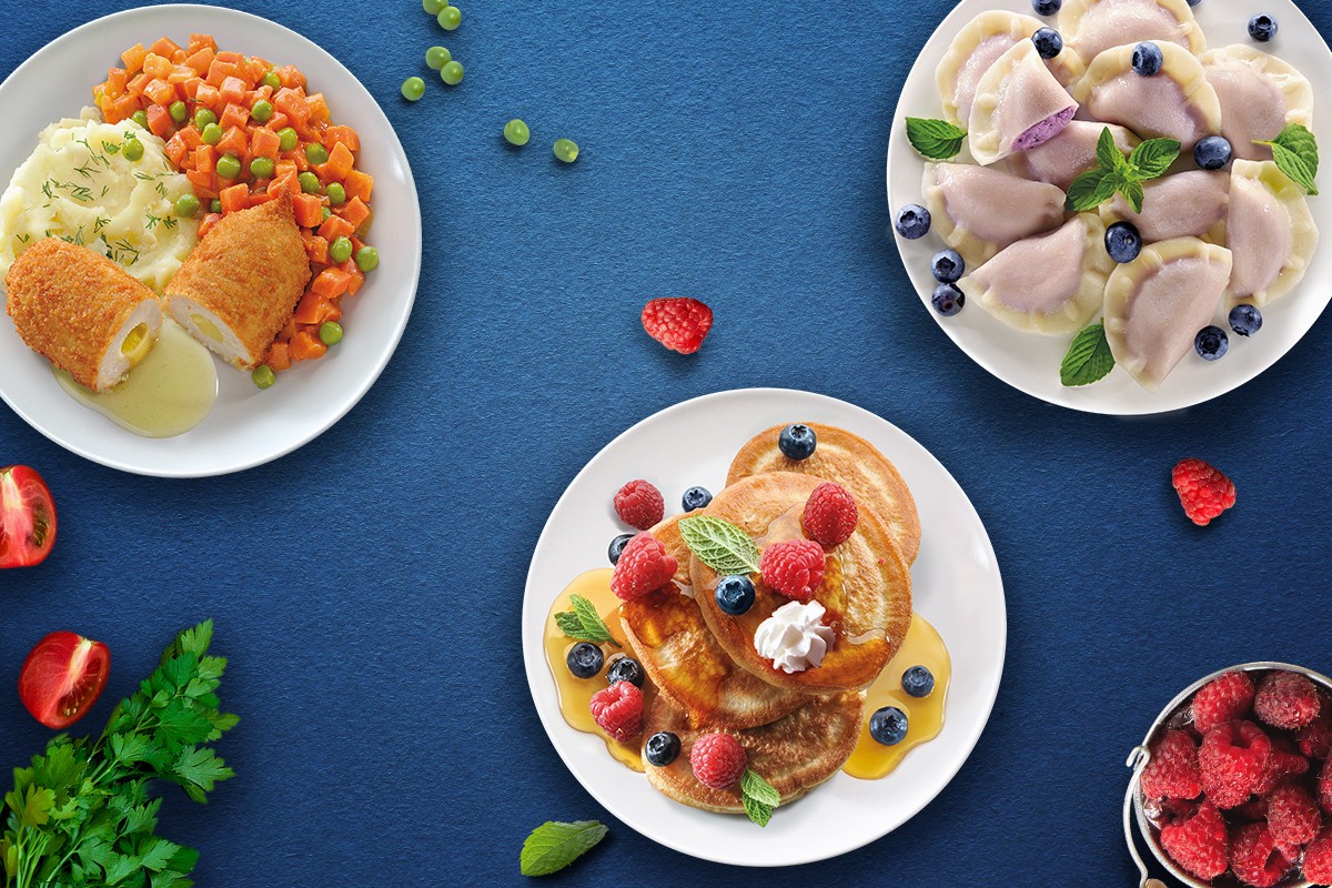 A może masz ochotę na coś zupełnie innego, na przykład na pierogi lub naleśniki? I w tym przypadku wybór gotowych dań jest bardzo szeroki – od pierogów ruskich lub z mięsem, aż po aromatyczne naleśniki arrabbiata. A kiedy najdzie Cię ochota na coś słodkiego, wybierz puszyste pancakes – wystarczy, że dodasz do nich odrobinę ulubionego sosu, syropu klonowego lub owoców.