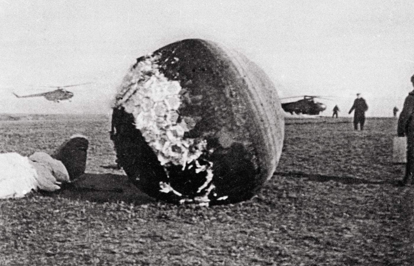 W tamtych czasach władze radzieckie trzymały w tajemnicy wszystkie próby kosmiczne, informowano o nich dopiero po ich pomyślnym zakończeniu. Tak było i tym razem. Mieszkanka wsi Smiełowka w obwodzie saratowskim, Tatarka Anna Akimowna Tachtarowa pieliła z wnuczką w polu ziemniaki. Widok spadającej z nieba postaci w jaskrawopomarańczowym hełmie bardzo ją przestraszył, bo nieco wcześniej usłyszała grom, choć nie było burzy. Wszyscy w Związku Radzieckim pamiętali o amerykańskim szpiegu Francisie Powersie, który w maju poprzedniego roku został zestrzelony nad Uralem. Na wszelki wypadek zapytała przybysza z nieba: „Dokąd idziecie? Co chcecie zrobić?”. Uspokoił ją po rosyjsku: „Ja swój, swój”. Upewniła się: „Przylecieliście z kosmosu?”. Tymczasem w stronę Gagarina biegli kołchoźnicy uzbrojeni w widły. Powstrzymał ich widok wielkich liter „CCCP” (czyli ZSRR) na jego hełmie. Rozbroił uśmiech i słowa: „Chłopaki, poznajmy się. Zostańcie jeszcze przez chwilę. Zaraz przyślą po mnie samochody. Zjawi się mnóstwo ludzi, zrobimy sobie pamiątkowe zdjęcie”. Tak zapamiętał tę chwilę traktorzysta z pobliskiego kołchozu.
