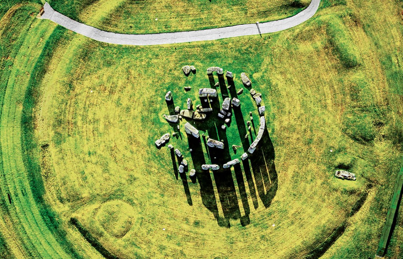 Wiadomo, że zanim w połowie III tys. p.n.e. powstał kamienny krąg, od 500 lat miejsce to otaczały wały i rów o średnicy 110 m. Według nowych ustaleń najstarszą kamienną konstrukcją jest krąg bram (trylitów) z ważących nawet 30 ton bloków piaskowca, a mniejsze głazy ułożono dopiero po 2200 r. p.n.e. Dwa lata temu skanowanie laserowe monolitów pozwoliło wykryć ślady ich obróbki i zniszczeń (np. graffiti z epoki wiktoriańskiej) oraz 71 niewidocznych gołym okiem rytów przedstawiających siekiery. Zresztą w III tys. p.n.e. Stonehenge nie było jedyne, bo na równinie Salisbury aż się roiło od innych monumentów i grobów. W oddalonym o 3 km Durrington Walls znajdował się największy brytyjski krąg ziemny o średnicy 480 m, rozległa wioska i aleja wiodąca ku rzece Avon. Tego lata archeolodzy z University of Birmingham i austriackiego Ludwig Boltzmann Institute namierzyli pod ziemią rząd monolitów stojących pod tym gigantycznym wałem (z 90 liczących 4,5 m głazów zachowało się 30, a po reszcie zostały fragmenty albo jamy).