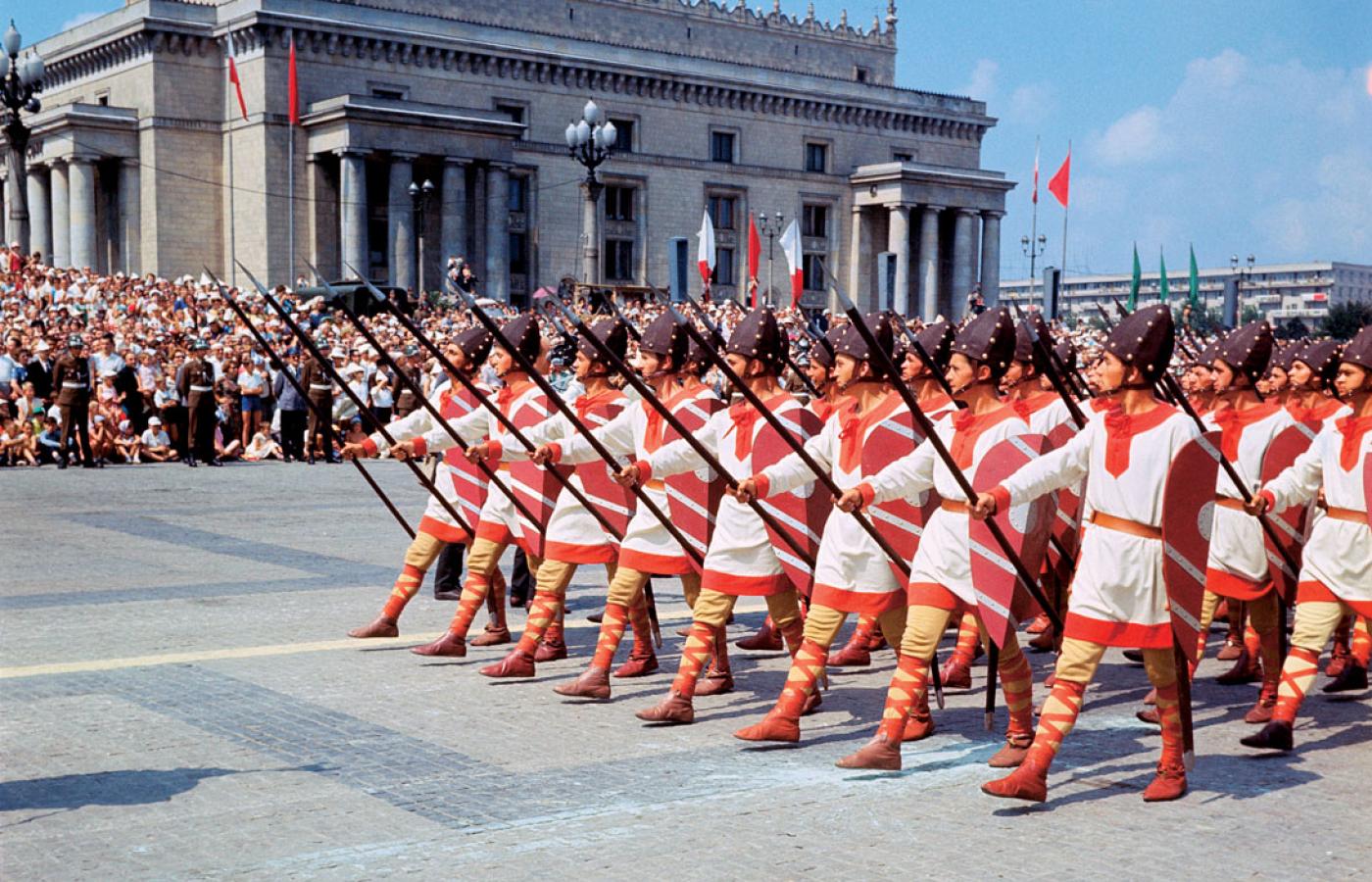 Na początku kwietnia wspólna notatka Wydziału Propagandy KC PZPR i GZP WP precyzowała plan defilady – miały się w niej znaleźć m.in. kolumny „zwycięzców nad Krzyżakami” i „zwycięzców spod Wiednia”. Warto zwrócić uwagę na używane sformułowania – nie wspominano o Polsce jagiellońskiej, Polsce szlacheckiej czy Rzeczpospolitej Obojga Narodów. Dzieje oręża miały się skupiać na wybranych bitwach, nie zaś mówić coś więcej o przeszłości Polski.