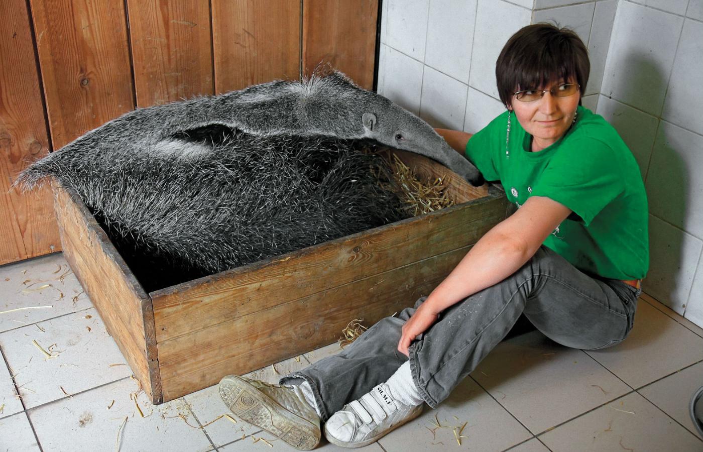 No co, moje słoneczko! – pani Beata karmi mrówkojada koktajlem z mielonych serc wołowych, jaj na twardo, suszonych krewetek, do tego banany i miód. Wartość odżywcza – 35 tys. termitów. Pępowinę odcinała mrówkojadowi 9 miesięcy temu i nie wie, jak to przetrzyma, kiedy pojedzie on do Anglii, gdzie czeka na niego samica. Poprzedni poleciał do Tel Awiwu. Potem przyszło mailowo zdjęcie jego żony z dzieckiem. Ze zdjęcia widać, że Jura jest spełniony w życiu.