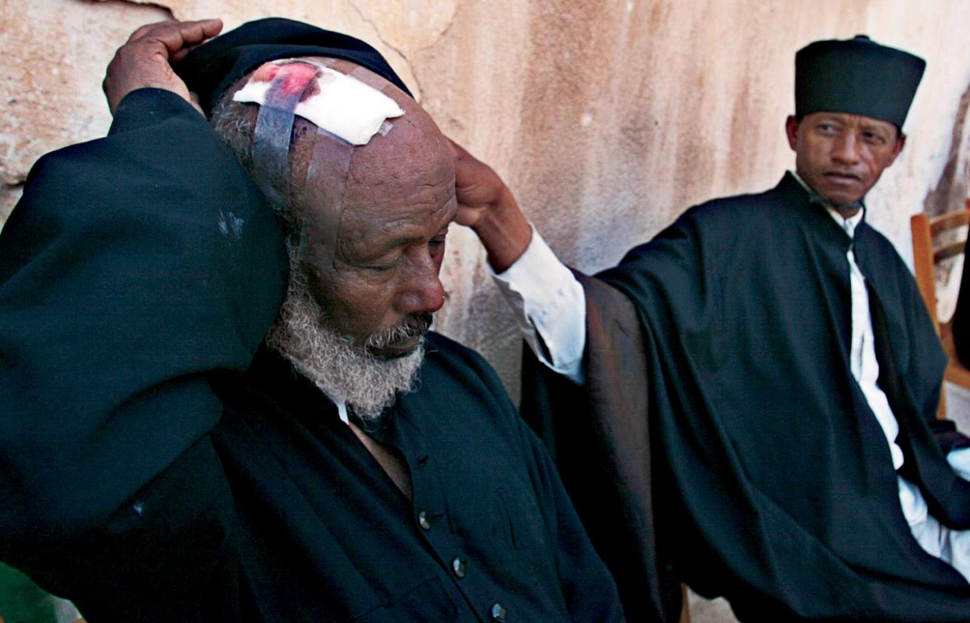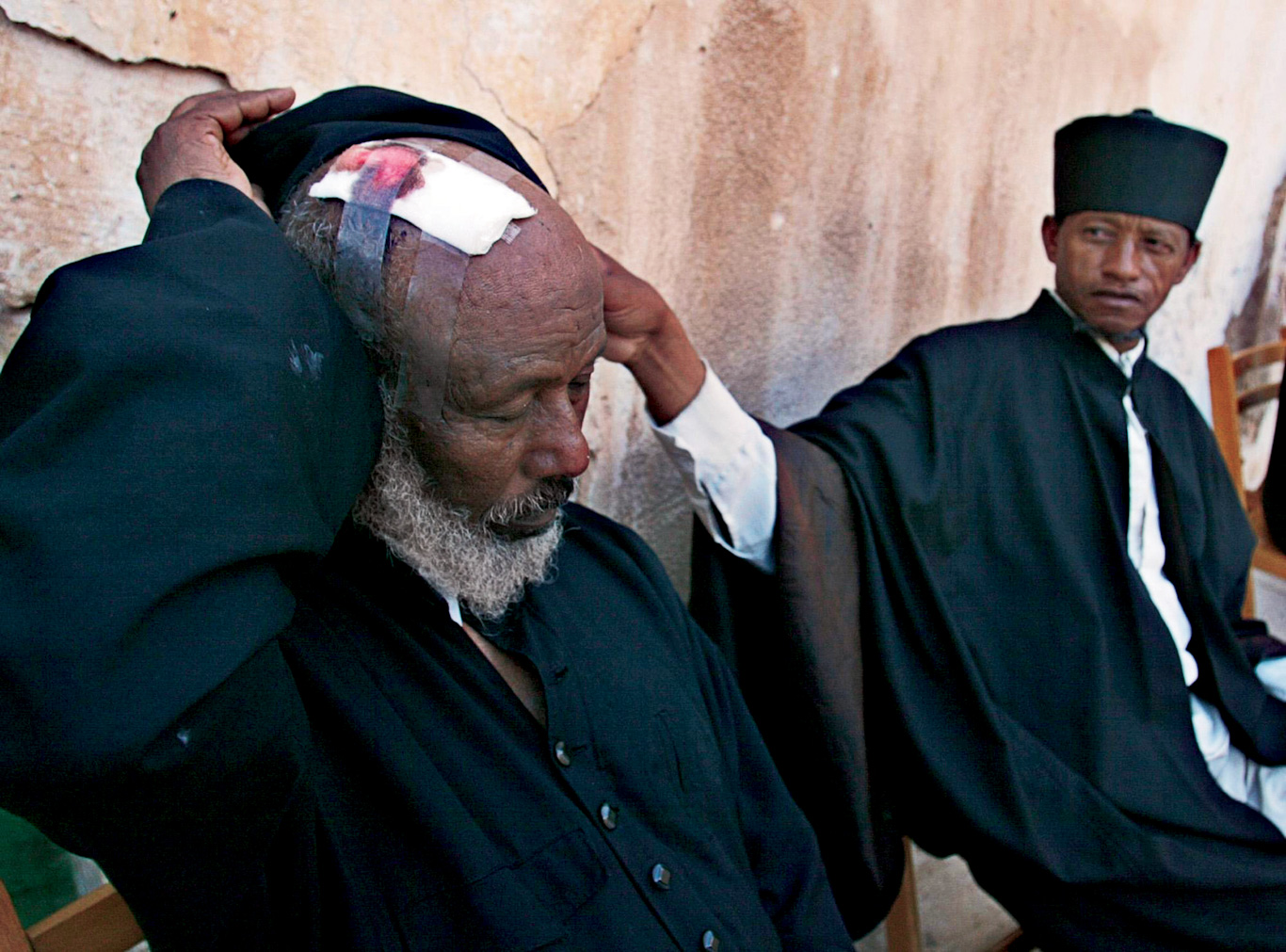 W protokole policyjnym odnotowano, że dwunastu mnichów doznało lekkich obrażeń cielesnych podczas bójki na dachu jerozolimskiej Bazyliki Grobu Świętego. Również jedna z policjantek została ranna; rozsierdzony zakonnik trzepnął ją butem w głowę. Rzekomo wszystko zaczęło się od tego, że zmęczony upałem koptyjski zakonnik przesunął krzesło w cień drzewa, które zapuściło korzenie po etiopskiej stronie dachu. Przedstawiciele kościoła etiopskiego dopatrzyli się w tym naruszenia ich prawa własności. Nie po raz pierwszy spory o kamienie Bazyliki prowadzą do rękoczynów. Jeden z najświętszych dla chrześcijaństwa obiektów od wieków wyzwala emocje niemające nic wspólnego ani z wiarą, ani z religią.