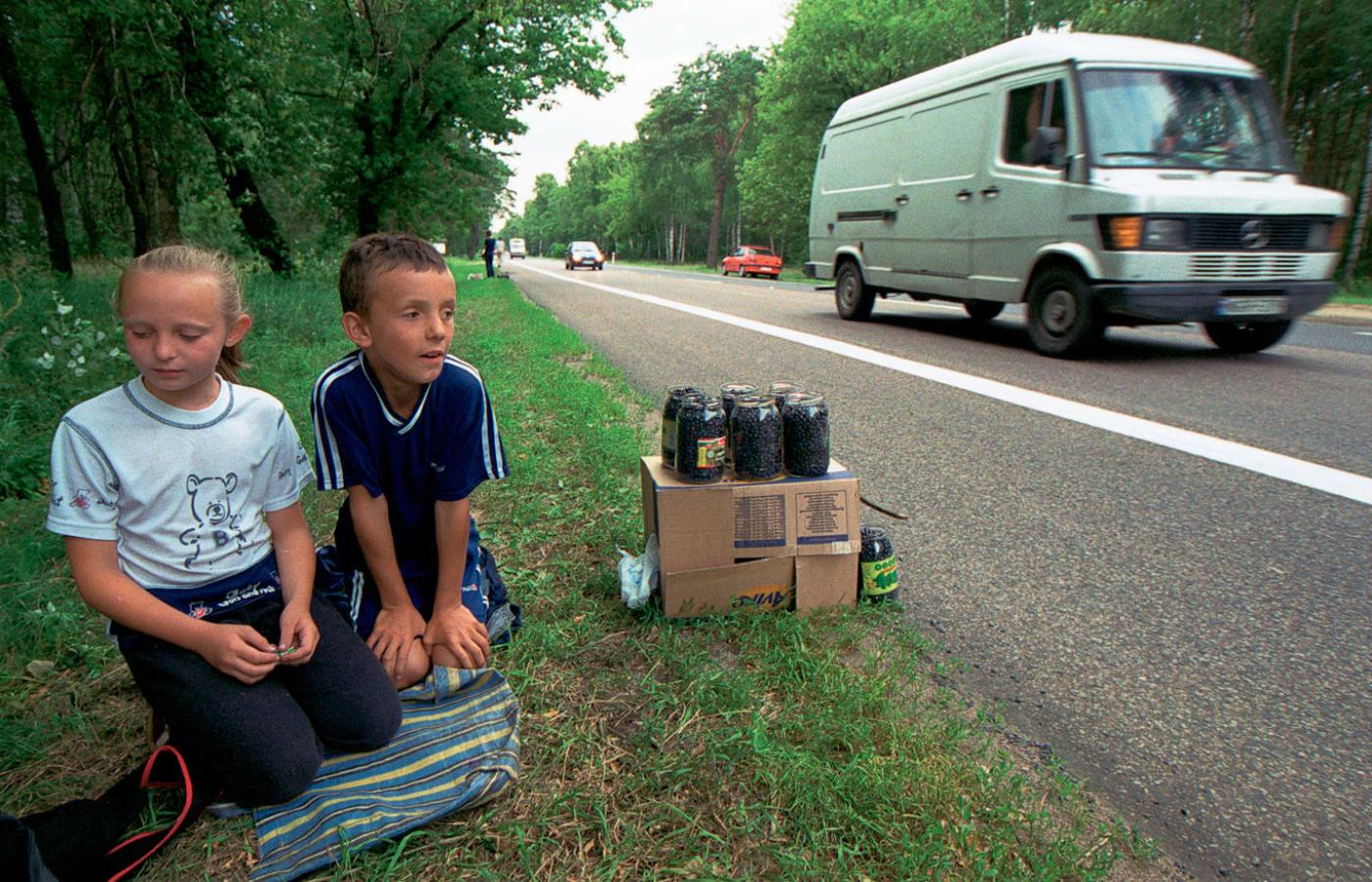 Polska szosa ma swój koloryt. Obok przydrożnych panien, w huku, w spalinach, w spiekocie czy deszczu stoją na poboczach dzieci i staruszkowie, bezrobotni z miast i rolnicy z pobliskich wsi. Z łubiankami jagód, z koszami czereśni, ze słomianymi jeżami, z plastikowymi krasnalami, z uwędzonymi węgorzami na patykach, arbuzami, ze starymi kołami. Najdłuższy supermarket nowożytnej Europy.