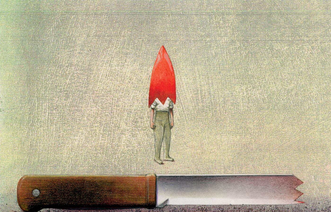 Chłopcy siedzieli w piwnicy w domu Chrystiana i pili piwo. W nogawce spodni Chrystiana zaczepiona była pochwa, a w niej nóż żołnierski. Znajomy dał mu ten nóż do naostrzenia, a on nosił go przy sobie. Taki fason. Kolega, który też pił piwo w piwnicy, ubrany był w żołnierską panterkę: sama męskość. Zaczynało być zimno, należało pójść do mieszkania Chrystiana na parter.