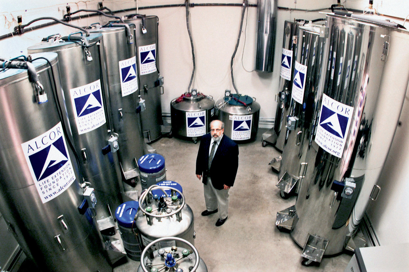 Zarządca obiektu Andy Zawacki codziennie sprawdza poziom i temperaturę wypełniającego pojemniki ciekłego azotu. – Są zawieszeni głowami w dół, bo gdyby zabrakło azotu, przynajmniej głowa pozostanie zamrożona. W tym największym jest czternastu, a w tym obok tylko ośmiu – mówi Andy. Zaraz dodaje, że instytut dysponuje generatorem na wypadek wyłączenia prądu, więc awaria zasilania jest raczej nieprawdopodobna.