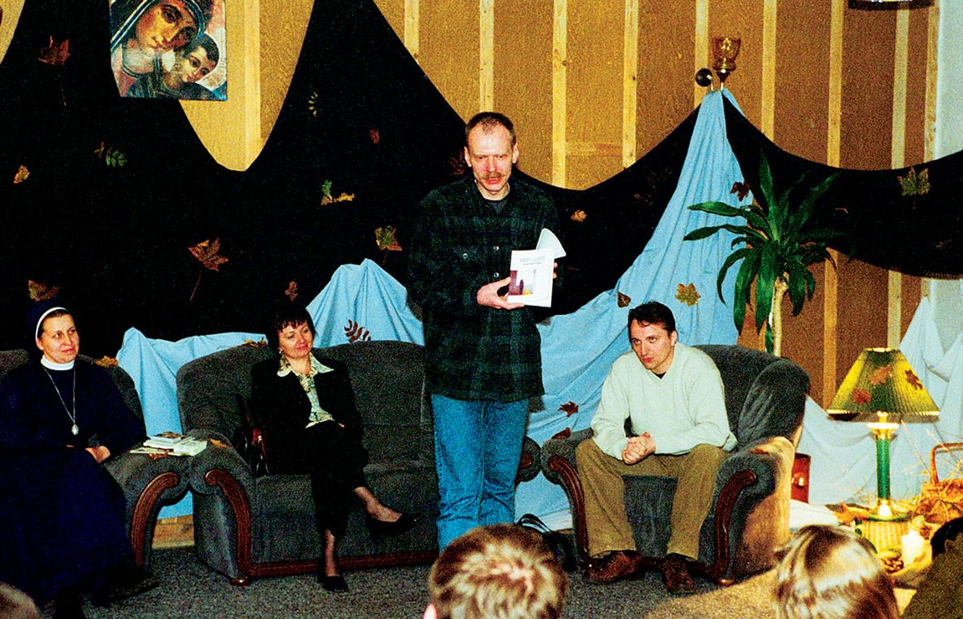 Piwnica pod Gwiazdami dla niepoznaki mieści się na drugim piętrze Wiatraka, czyli Centrum Kultury Katolickiej przy kościele na bydgoskim Fordonie. Na spotkanie ze studentami Seroczyński przywiózł dwóch swoich „bandytów”: Sławka Sikorę i Piotra Bogdanowicza. Przyjechała też opiekunka Bractwa Więziennego, zakonnica Karolina Łyskawka. Młódź studencka początkowo sprawiała wrażenie skonsternowanej faktem, że skazanym za zabójstwa towarzyszyła siostra zakonna i dowcipkujący wychowawca, a nigdzie nie było widać uzbrojonych strażników więziennych. Rysiek rozładował atmosferę opowiadając o jednej z poprzednich wypraw. Na pielgrzymkę do Lichenia zabrał 20 skazanych, siostrę Karolinę i kilkanaście osób z instytucji współpracujących z więzieniem we Włocławku. Jechali wielką więźniarką i przy leśnym parkingu zatrzymali się na – jak mówi Rysiek – sikundę. Traf chciał, że stał tam też radiowóz z policjantami. – Wyglądali na zdziwionych, kiedy z wnętrza zakratowanej ciężarówki wysiadła najpierw zakonnica, potem jeszcze kilka kobiet, a na końcu więźniowie – opowiadał Seroczyński. – I wszyscy w jak najlepszej komitywie.