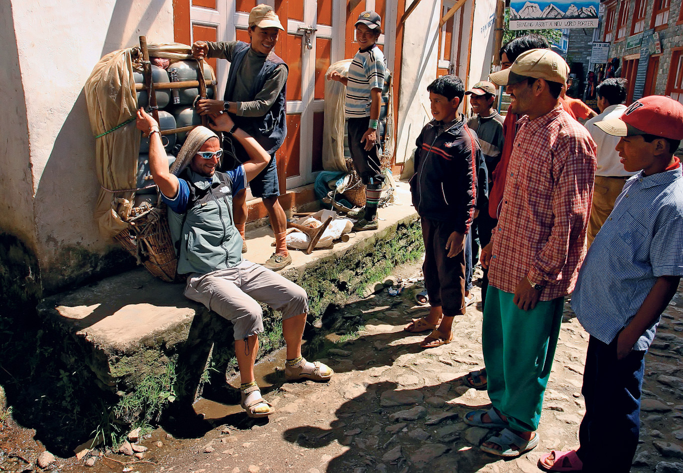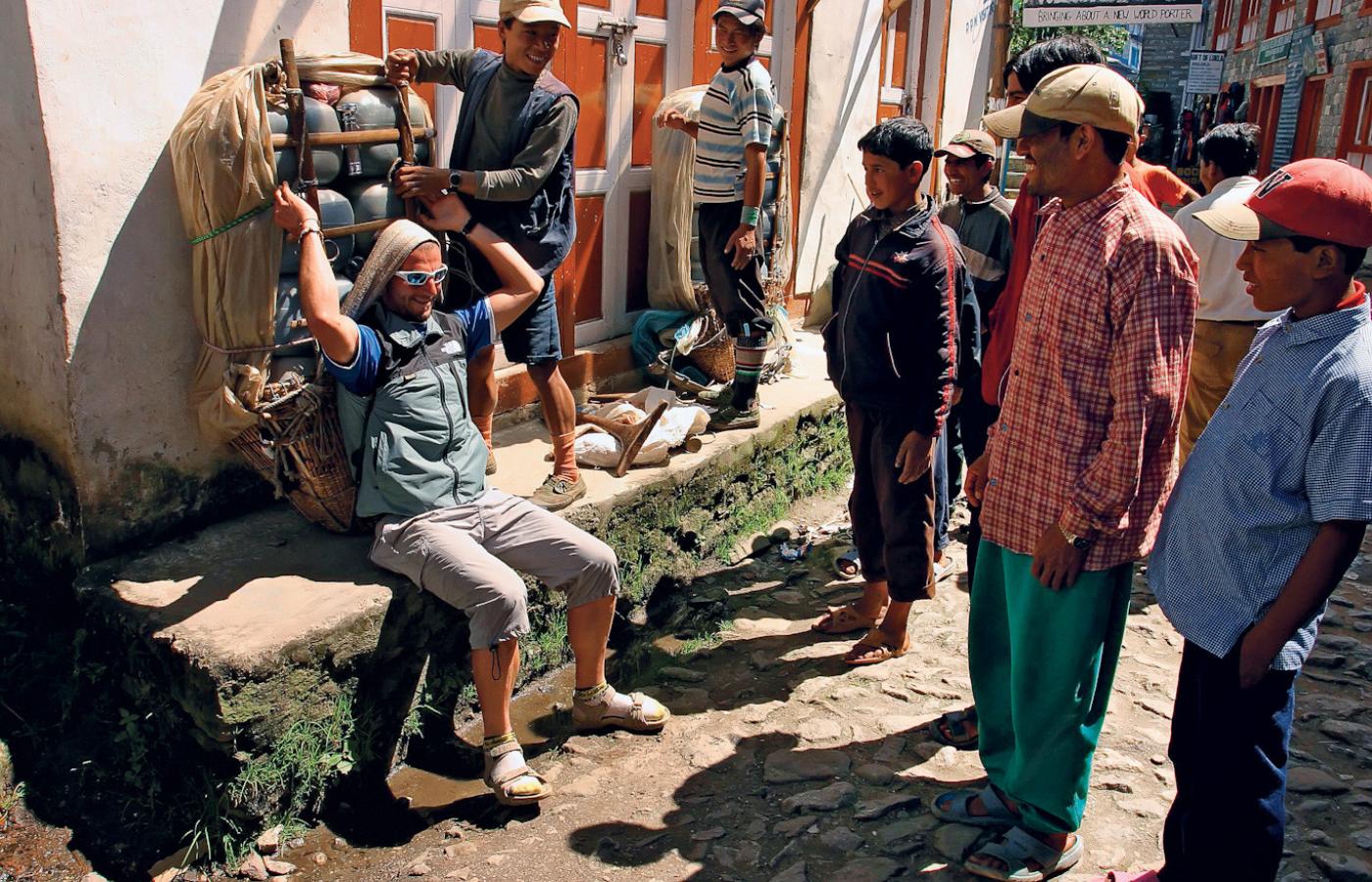To tylko kilka uliczek i kilkadziesiąt domów położonych na stromym zboczu, ale ruch tu jak w metropolii. Każdy ma coś do załatwienia – pieniądze do wydania i do zarobienia. Z północy, od strony Tybetu, schodzą z gór karawany jaków objuczonych nowiutkim ekwipunkiem dla wspinaczy. Same superwytrzymałe tkaniny – nie przepuszczają wiatru, wody, zimna ani gorąca.