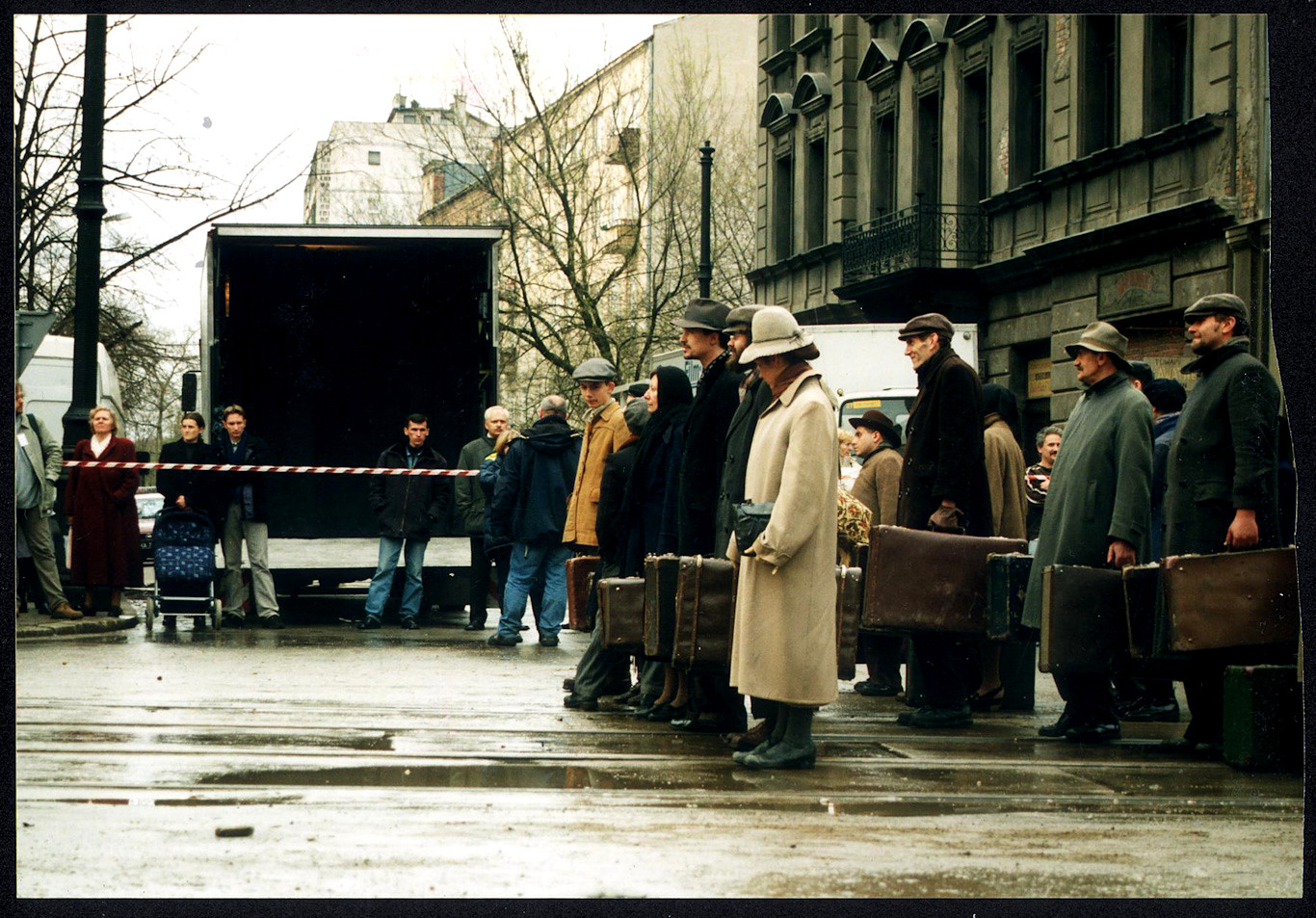 Autokary dowożą statystów na Pragę, na plan filmu, z wytwórni na Chełmskiej. Wcześniej kolejka do garderoby, kolejka do charakteryzacji; trochę potrwa, zanim pojazdy całkiem się zapełnią. Siedząca obok mnie staruszka rozgląda się wśród pasażerów i głośno pyta: – Gdzie są opaski? Lekkie poruszenie, ale zaraz pojawia się dziewczyna z ekipy: – Pani nie dostała? Staruszka kręci głową i dodaje: – Powinny być opaski. Wtedy wszyscy mieliśmy opaski. Bo wie pani, ja to przeżyłam. Jeżeli miały być, to gdzie się podziały? Inna kobieta wyciąga swoją z torebki, ktoś sięga do kieszeni: – My je mamy, tylko że ubieramy dopiero na planie. Oglądam swoją: przybrudzona, żółtawa. Gwiazda Dawida w niebieskim kolorze. Takie oznaczenie – żeby już nikt się nie pomylił. Na planie co i rusz któraś z garderobianych będzie te opaski poprawiać – muszą wyglądać naturalnie, to znaczy rolować się od długiego noszenia.