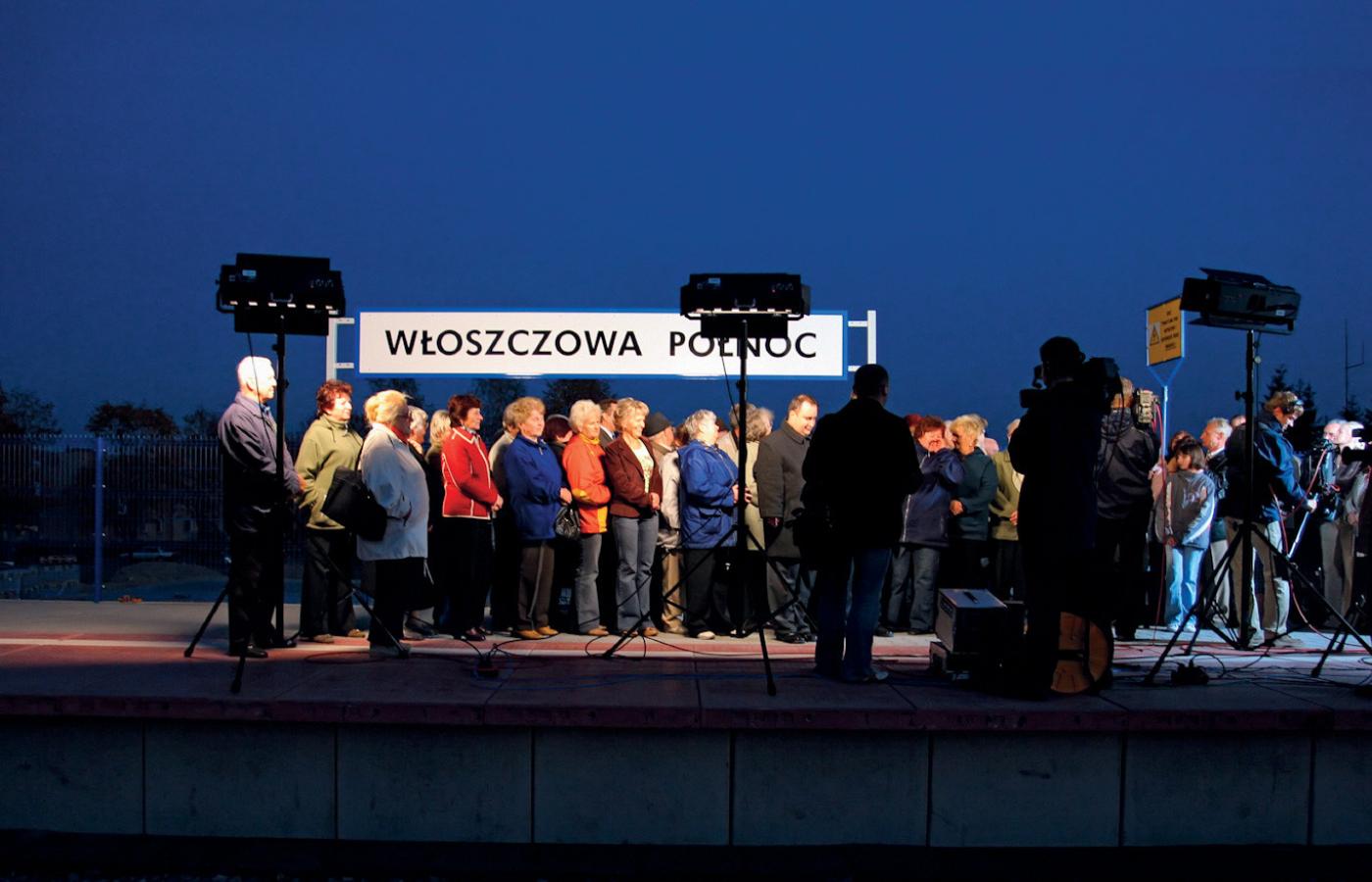 Fotografował zatem pociąg ekspresowy, który delikatnie rozrywał rozwieszoną między słupami sieci trakcyjnej plastikową taśmę w barwach państwowych, a zebrani klaskali maszyniście za tę delikatność, a niektórzy także za punktualność, chociaż nie mieli zamiaru do pociągu wsiadać. Była godzina 7.34, orkiestra kolejarzy z Siedlec grała walczyka, z puzonów i trąbek buchała para wodna; przy torze numer 4 we Włoszczowie przemawiał chrzestny peronu – minister Przemysław Gosiewski z Prawa i Sprawiedliwości.