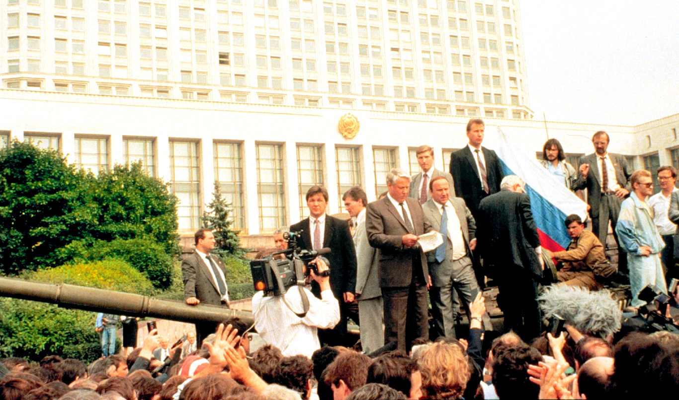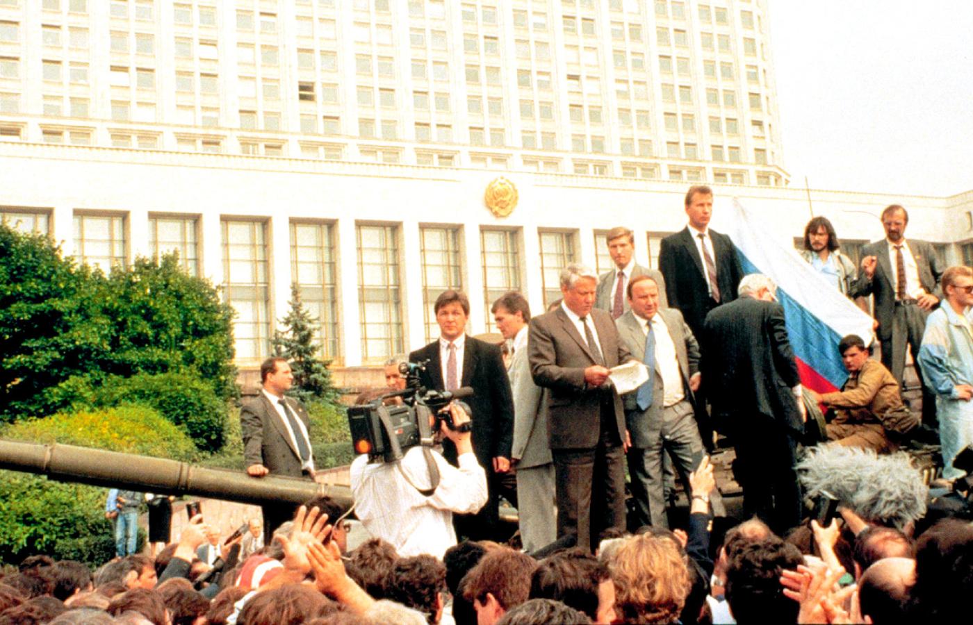 W odróżnieniu od Gorbaczowa – Jelcyn nie miał zahamowań natury ideologicznej. Były wysoki aparatczyk wziął rozbrat z KPZR i spektakularnie zrezygnował z przywilejów nomenklatury. Sympatię Rosjan zjednywały mu także deklarowana bezwzględna walka z korupcją i biurokracją oraz zdecydowana postawa w walce z prezydentem ZSRR. Pierwsze wybory prezydenckie w Rosji (12 czerwca 1991 r.) Jelcyn wygrał już w pierwszej turze. Ten ogromny kredyt zaufania powiększył jeszcze swoją dzielnością podczas zamachu stanu dokonanego przez partyjny beton (tzw. pucz Janajewa w sierpniu 1991 r.). Świat obiegły wówczas fotografie: stojący na czołgu Jelcyn wzywał do społecznego sprzeciwu przeciwko puczystom, do obrony zdobyczy demokracji.