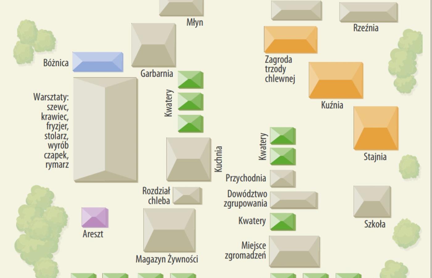 Mapka pozwala zorientować się, jak wyglądała baza, znana w literaturze pod nazwą obóz rodzinny Bielskich, w ostatniej, szczytowej fazie (jesień 1943 – lato 1944). Jest to zaiste imponujące, że w sercu Puszczy Nalibockiej, w ostępach leśnych pełnych bagien i mokradeł, zbudowane zostało miasteczko z ziemiankami (na ogół na 40 osób), w których nocowano; z warsztatami (m.in. kuźnią, piekarnią, garbarnią, zakładem szewskim, krawieckim, stolarskim, zegarmistrzowskim, fryzjerskim, czapniczym i metalowym, czyli zbrojownią, a właściwie rusznikarnią, bo tam naprawiano i remontowano broń, a nawet wytwarzano części do karabinów i rewolwerów) oraz placówkami użyteczności publicznej takimi jak: ambulatorium, szpital zakaźny (tyfus plamisty!), szkoła, bóżnica, a także areszt.