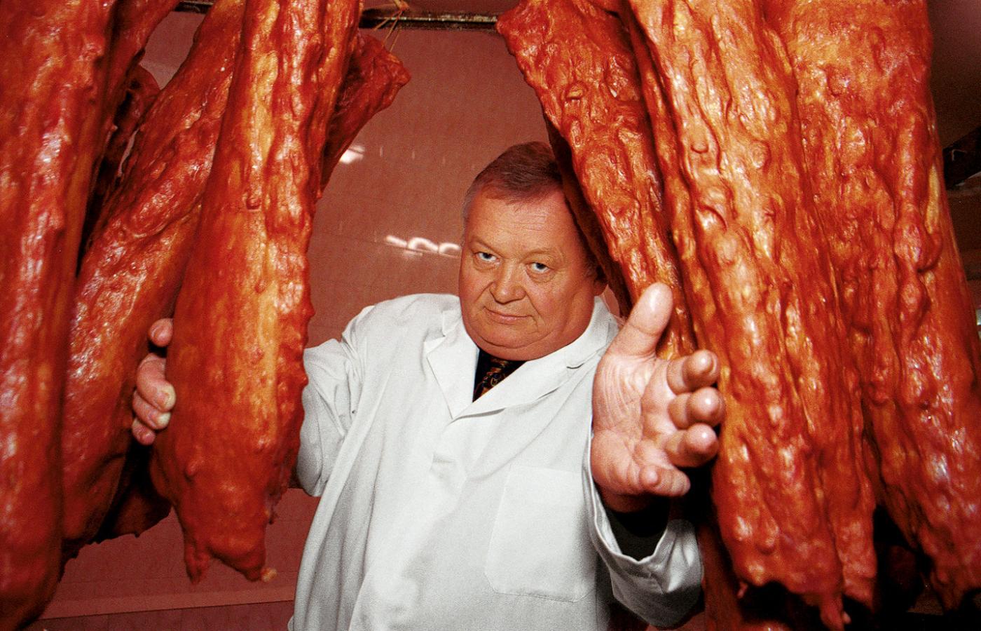 – Jakość zaczyna się w oborze i chlewie – powiada na wstępie sentencjonalnie Kazimierz Stańczyk, honorowy prezes Stowarzyszenia Rzeźników i Wędliniarzy RP, od 44 lat w branży, człowiek, jak na rzeźnika i wędliniarza przystało, słusznej budowy – 125 kg w ubraniu, czyli brutto. A powiada to w sali konferencyjnej zakładu przetwórstwa mięsnego Lukullus w Leoncinie, którego właścicielem jest Wojciech Szymański, 132 kg brutto, wędliniarz po ojcu, który jeszcze przed wojną miał zakład w Nowym Dworze.