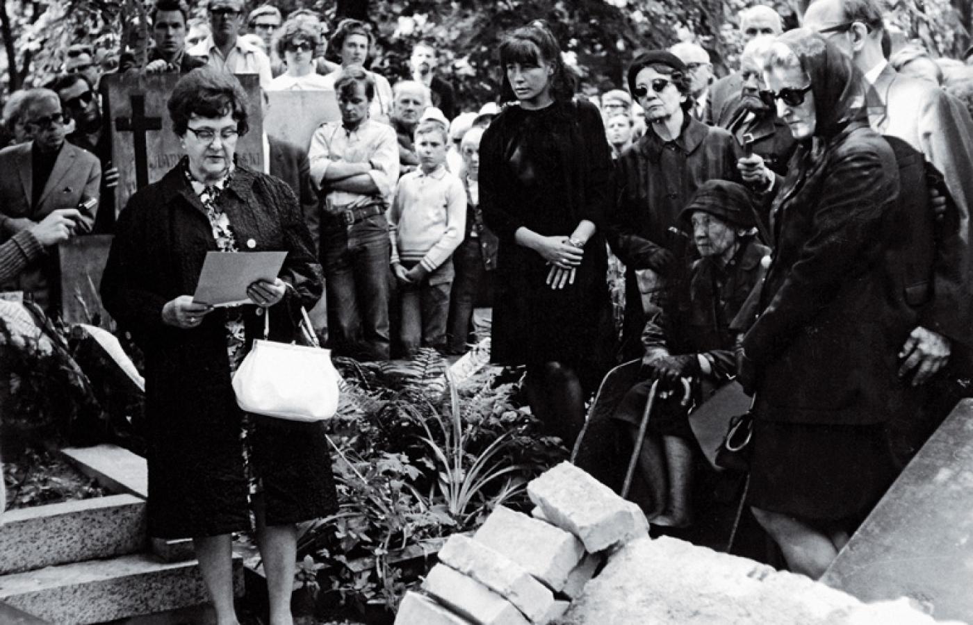 „Zachowywała się tak, jak przystało na smutną wdowę po wielkim pisarzu” – zapamiętał kpt. Adam G. z SB, który rejestrował służbowo wszystko, co mówiono nad trumną pisarza. Dzięki Służbie Bezpieczeństwa, która w sierpniu 1970 r. wysłała na cmentarz aż trzech pracowników, wiemy, że na pogrzebie przemawiał Jan Parandowski, po nim Stanisław Stomma i na końcu Jerzy Andrzejewski. Wiadomo nawet, kto zaintonował „Jeszcze Polska nie zginęła...”, kto śpiewał, a kto tylko ruszał ustami.