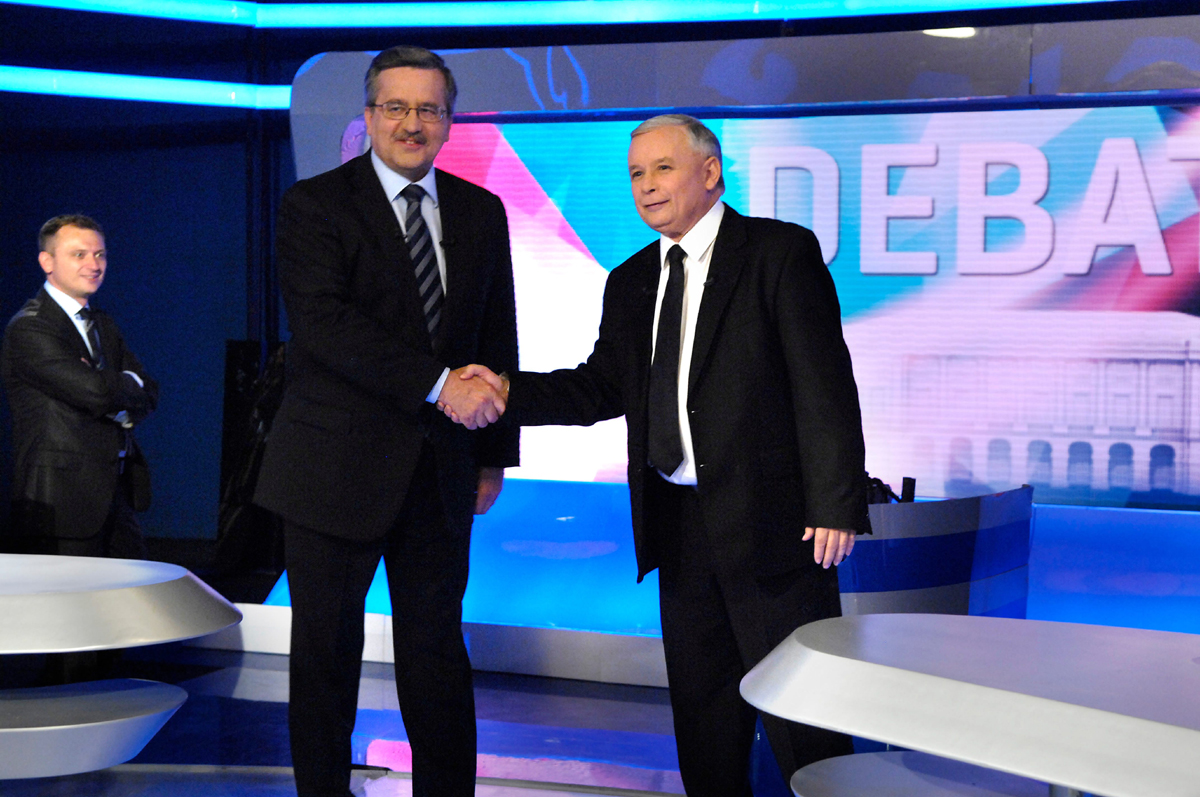 Bronisław Komorowski: Marszałek znów zarzucił PiS, że jest partią tylko „od gadania”, w przeciwieństwie do PO, która „jest od roboty”. Podkreślił, że rządowi PiS w 2006 r. zdarzyło się nie rewaloryzować rent i emerytur, zaś PO robi to co roku. Wspiera też słabsze województwa (na podkreślenie prawdziwości tych słów, kandydat PO pokazał kartkę z wykresami). Przypomniał również, że Kaczyński przegrał proces o kłamstwo w sprawie prywatyzacji służby zdrowia. - W konstytucji jest napisane, że każdy obywatel ma prawo leczyć się za darmo, za pieniądze NFZ. Ja tego na pewno nie zmienię. Nie będę też likwidować 200 szpitali jak proponował pański rząd – stwierdził.