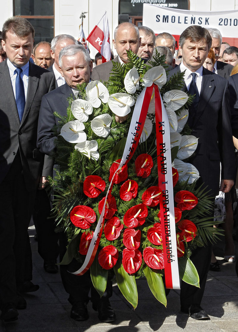 PiS składa wieniec pod Pałacem Prezydenckim, 10 lipca 2010 r. Od lewej: Mariusz Błaszczak, Jarosław Kaczyński, Joachim Brudziński i Marek Kuchciński PiS składa wieniec pod Pałacem Prezydenckim, 10 lipca 2010 r. Od lewej: Mariusz Błaszczak, Jarosław Kaczyński, Joachim Brudziński i Marek Kuchciński Andrzej Stawiński / Reporter