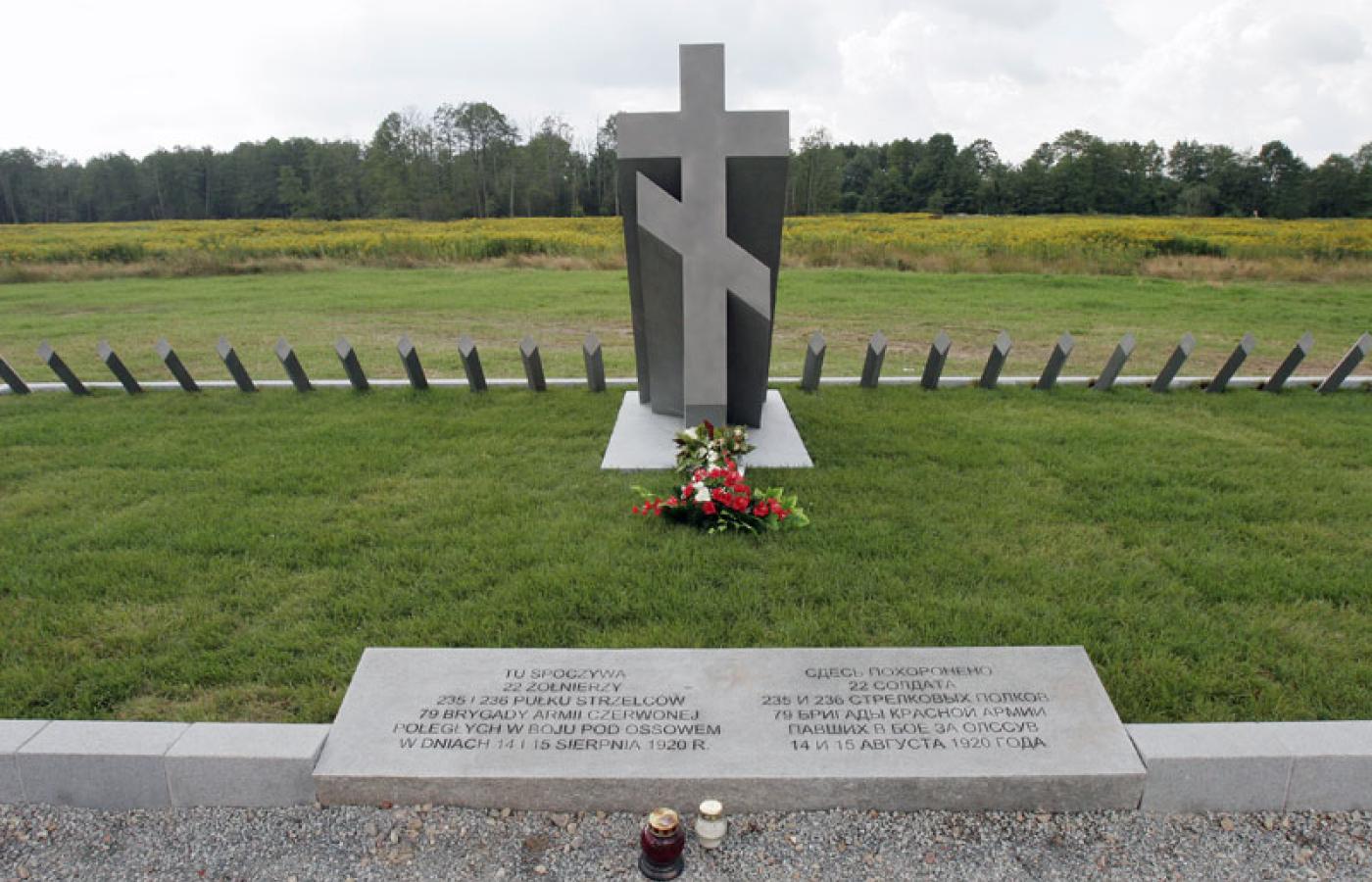 Na zapomnianej w ostatnich dniach mogile poświęconej bolszewickim żołnierzom pokonanym i poległym w bitwie warszawskiej w szczerym polu w Ossowie wiatr przewraca wazon z kwiatami i gasi znicz – znów robi się symbolicznie, ale nie ma przy tym kamer. Od czasu do czasu tylko jakiś samochód przedziera się przez błota, staje przed mogiłą, ludzie wychodzą, stoją w powadze. Ktoś wchodzi na trawę z rolki i ustawia wazon. Ludzie robią sobie zdjęcia z mogiłą, rzucają polne kwiatki.