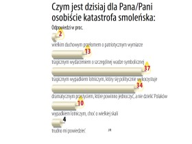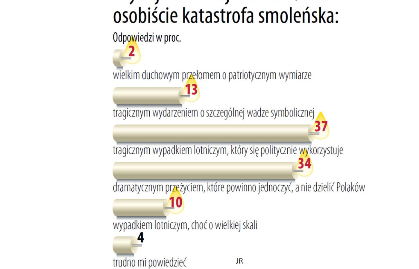 Bardzo ciekawe są odpowiedzi na kolejne pytanie naszego badania, gdzie chcieliśmy odkryć, czym osobiście dla Polaków była katastrofa na Siewiernym. Tylko 2 proc. respondentów odpowiedziało, że „wielkim duchowym przełomem o patriotycznym wymiarze”. I kolejne 13 proc. – że „tragicznym wydarzeniem o szczególnej wadze”. W sumie te 15 proc. to zaledwie nieco ponad połowa poparcia dla PiS, który stawia tę sprawę na najwyższym moralnym stopniu.