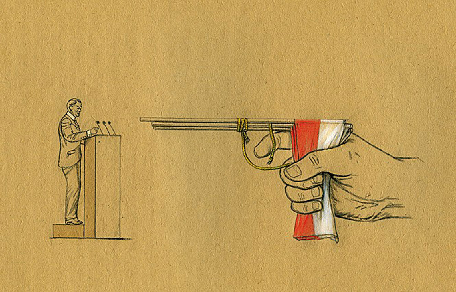 Platforma, zdaniem polityków PiS i pisowskich komentatorów, poza tym, że jest skrajnie nieudolna i nieodpowiedzialna, coraz bardziej zagraża demokracji. Staje się instytucjonalną partią władzy, opresyjną wobec opozycji, manipulującą opinią publiczną, ograniczającą wolność słowa i swobody obywatelskie. I co? I nic? Większość społeczeństwa zapadła w hipnotyczny sen. A wyobraźcie sobie – zdaje się mówić PiS – że oto, dla porównania, mamy takie sytuacje [fabularyzacja autorów]: