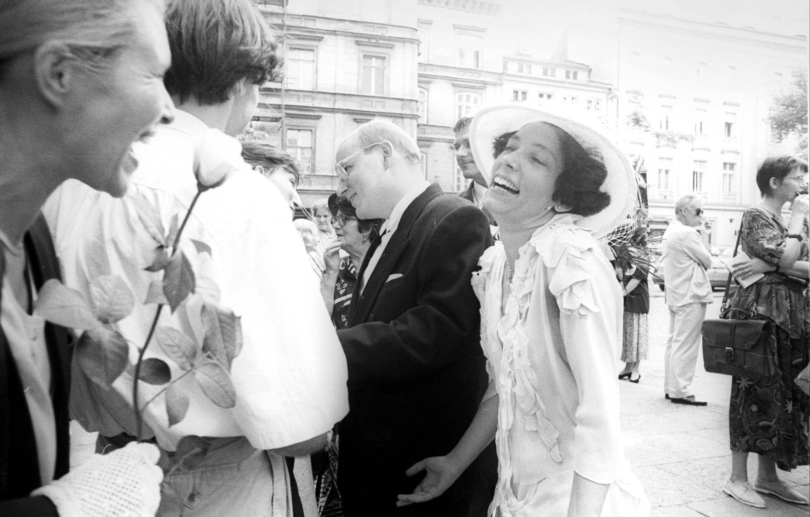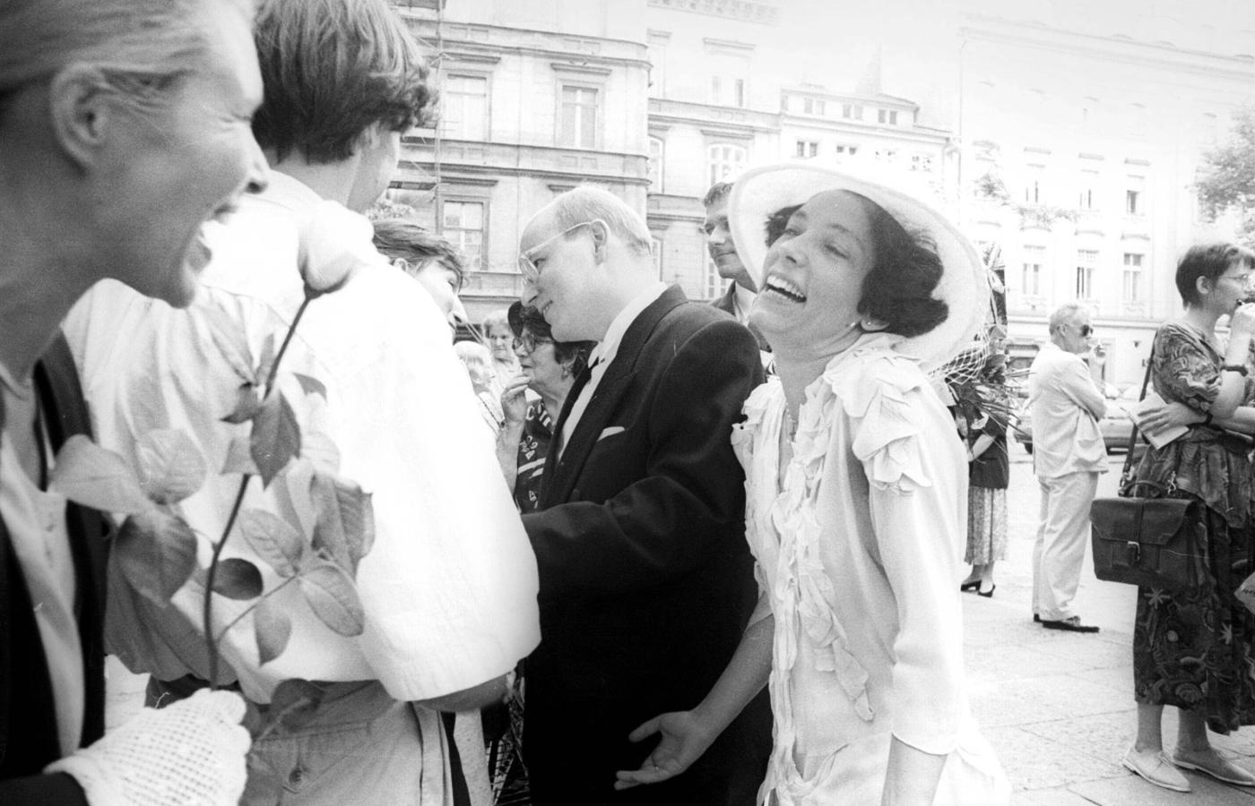 26 lipca 1994 r., krakowska bazylika ojców dominikanów, modna wśród tutejszej młodej inteligencji. Pan młody występuje w czarnym garniturze i białej muszce, pani młoda – w białym kostiumiku i kapeluszu z koronkami. Wielu spośród gości to postaci publiczne. Gratulacje składają Bartłomiej Sienkiewicz, Konstanty Miodowicz, nie licząc innych aktywistów dawnej opozycji.