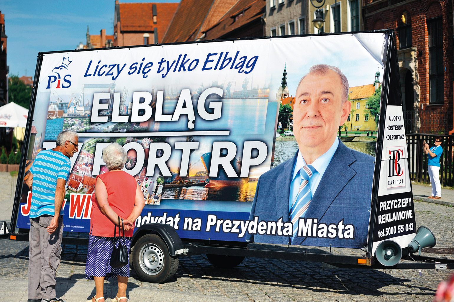 Po zaskakującym odwołaniu ekipy rządzącej Elblągiem miasto zostało potraktowane jak poligon doświadczalny, gdzie trenowało się rozbijanie Platformy. Rozegrała się tam kampania wyborcza, jakiej „w terenie” chyba jeszcze nie widziano. – Ktoś, kto przyjeżdża do nas z zewnątrz, może pomyśleć, że wybieramy prezydenta Polski albo parlamentarzystów. Kandydaci mówią głównie o tym, kogo ważnego znają, zamiast przedstawiać propozycje dla miasta – mówi Maria Kasprzycka, dyrektorka Muzeum Archeologiczno-Historycznego w Elblągu.