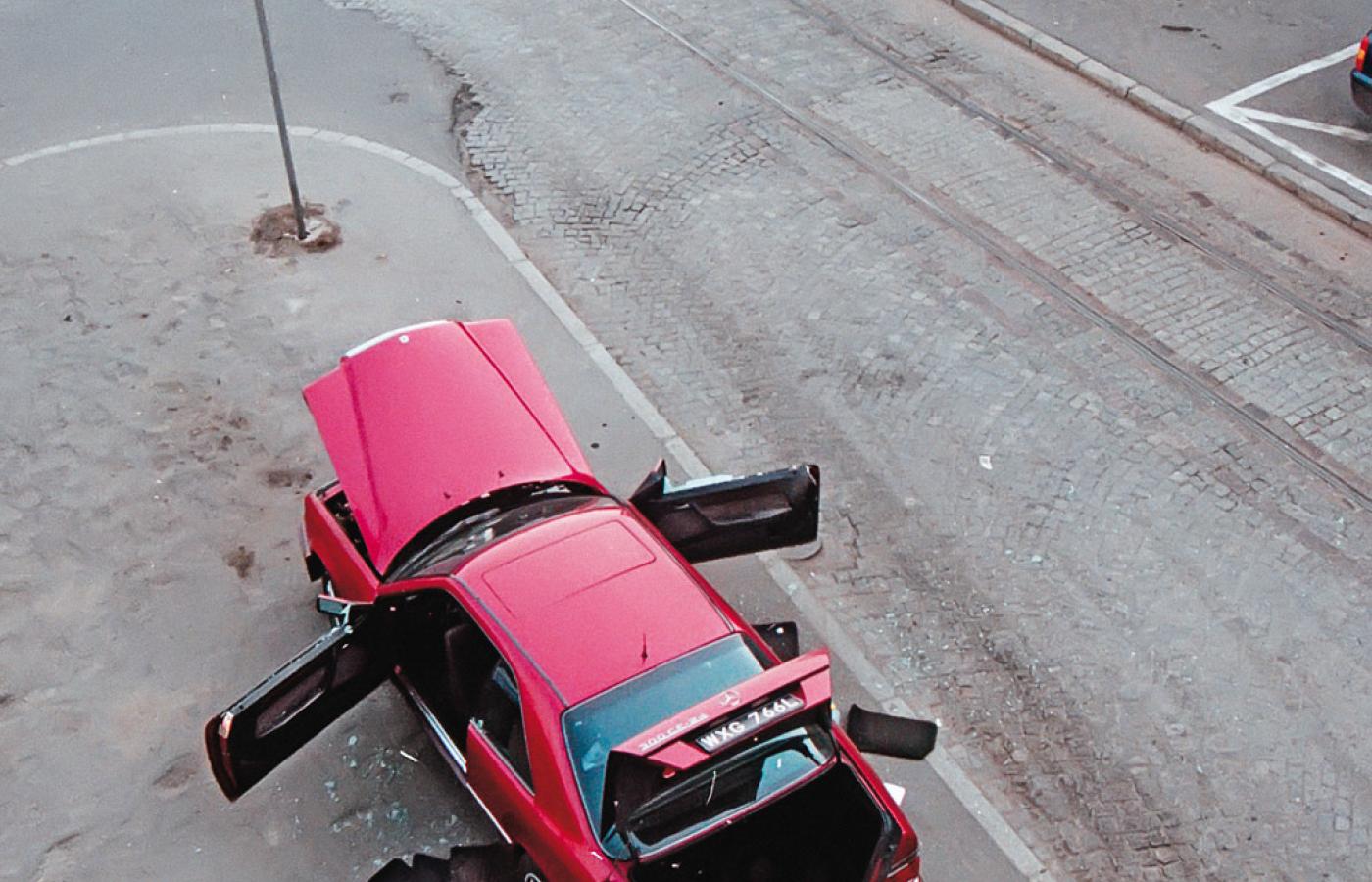 Po paru godzinach w lesie w pobliżu Falenicy znaleziono spalonego Poloneza. Jego właściciel, uczeń aktorskiego studium policealnego, stał się pierwszym podejrzanym. Zatrzymano go i zwolniono, kiedy okazało się, że auto wcześniej mu skradziono, a on ma niezbite alibi.