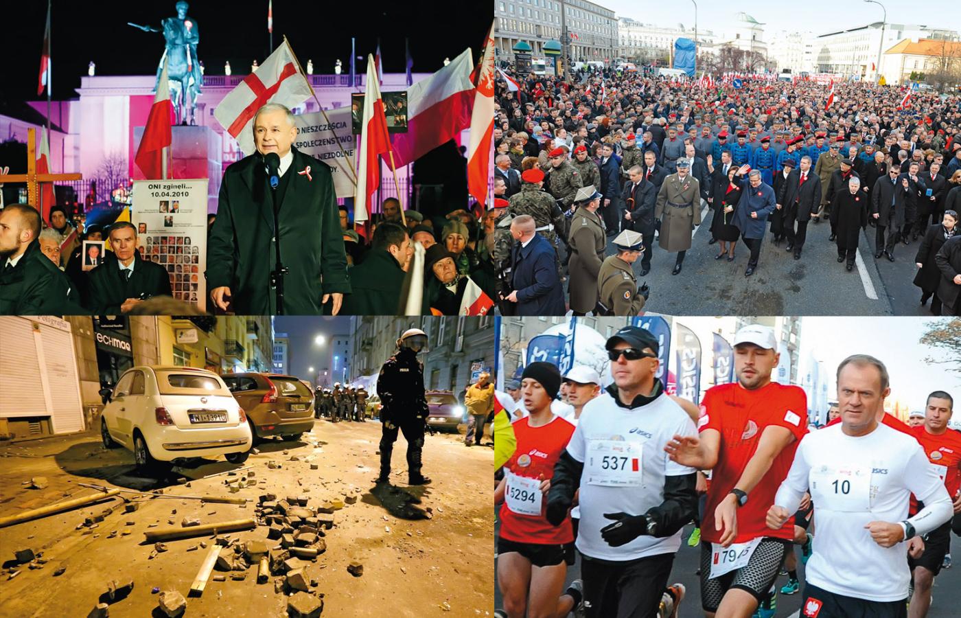 Bieg z Tuskiem „35 lat temu ganialiśmy się z policją, bo święto było zakazane. W wolnej Polsce lepiej pobiec w Biegu Niepodległości, niż udawać bojownika” – napisał na Twitterze przed 25 jubileuszowym biegiem premier Donald Tusk. 10-kilometrową trasę pokonał w 49 min 44 sek. To jego życiowy rekord. Pierwszy przybiegł wrocławianin Arkadiusz Gardzielewski (30:03). Biegło ponad 12 tys. osób. Po biegu premier dołączył do finału marszu prezydenckiego.
