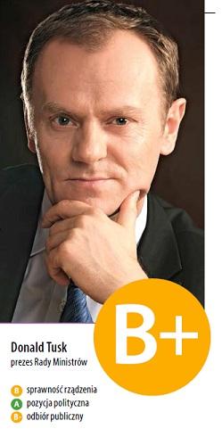 Specjaliści z centrum analitycznego POLITYKA INSIGHT przygotowali jakościową ocenę pracy premiera Donalda Tuska i jego ministrów. Podstawą ratingu jest 13 ocen, odnoszących się do trzech wymiarów działalności każdego członka rządu. (…) Obowiązuje 9-stopniowa skala: A+, A, A-, B+, B, B-, C+, C, C-.