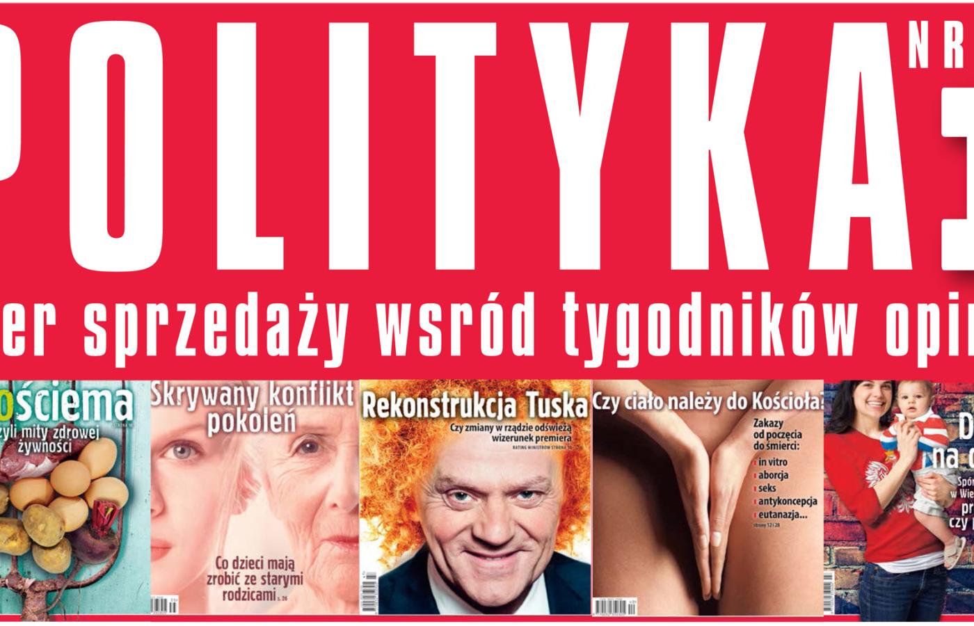 Według najnowszych danych Związku Kontroli Dystrybucji Prasy POLITYKA – po wygranej rywalizacji sprzedażowej w 2013 r. – umocniła się na początku bieżącego roku na pozycji lidera sprzedaży na rynku tygodników opinii. W styczniu POLITYKA była jedynym tytułem segmentu, który poprawił sprzedaż w stosunku do analogicznego okresu roku ubiegłego. Średnia sprzedaż naszego tytułu wyniosła w tym czasie 122 124 egz. i była o 1,7 proc. wyższa w porównaniu ze styczniem ubiegłego roku. Na drugim miejscu z 8-proc. spadkiem i sprzedażą 114 981 egz. uplasował się „Newsweek”. Trzecie miejsce przypadło tygodnikowi „wSieci”, który z wynikiem 77 436 egz. odnotował spadek o 35 proc. Na kolejnych miejscach znalazły się tytuły wydawane przez Media Point Group: „Do Rzeczy”, które sprzedawało średnio 66 556 egz. i zanotowało spadek na poziomie 44,5 proc., oraz „Wprost” – sprzedające średnio 55 193 egz. (spadek o 10 proc.).