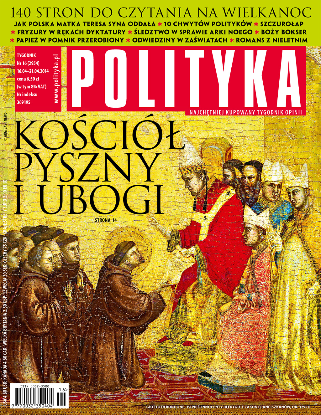 – bardzo interesujący esej Adama Szostkiewicza o wiecznych zmaganiach, jakie toczą się w Kościele katolickim między nakazami ubóstwa a skłonnością do przepychu