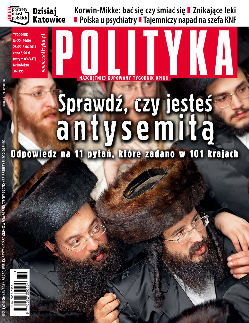Nieprzypadkowo, ponieważ niedawno zostały ogłoszone wyniki wielkiego, ogólnoświatowego sondażu, przeprowadzonego w 101 krajach na wszystkich kontynentach, z którego wynika, że ponad miliard ludzi ma poglądy niechętne Żydom, określane przez twórców badania jako antysemickie. Gdzie jest w tym „rankingu” Polska? Zachęcamy do lektury interesującego artykułu Adama Szostkiewicza i Jędrzeja Winieckiego „Anty bez granic”, w którym autorzy omawiają badania, pisząc o antysemityzmie tradycyjnym i „nowoczesnym”. A także do odpowiedzi na pytania z tej samej ankiety, którą wypełniali respondenci wspomnianego sondażu – zamieszczamy ją w najnowszej POLITYCE. Krótko mówiąc, jest okazja, aby sprawdzić, czy samemu nie ma się skłonności do antysemityzmu.