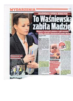 Na drugiej stronie infografika. Dramatyczne zdjęcia ze szpitala. Łącznie ze zwłokami córki aktorki przykrytymi białym prześcieradłem. A do tego tekst. W tonie pozornie współczującym. To też może się przydać w sądzie jako argument. Na potrzeby serialu szybko odkurzono, wcześniej mało atrakcyjną dla tabloidów, historię rozwodu Kolskich i jego nowego związku z dużo młodszą partnerką. Dzięki temu serial miał już dwa wątki. Kolejne tytuły tego serialu to: „Śmierć córki dobije aktorkę”, „Szykuje grób dla córki”, „Nie przyszła na mszę za córkę”, „Żegnaj córeczko”, „Zamienił Kolską na 20-latkę”, „Zabiła córkę, uniknie kary?”.