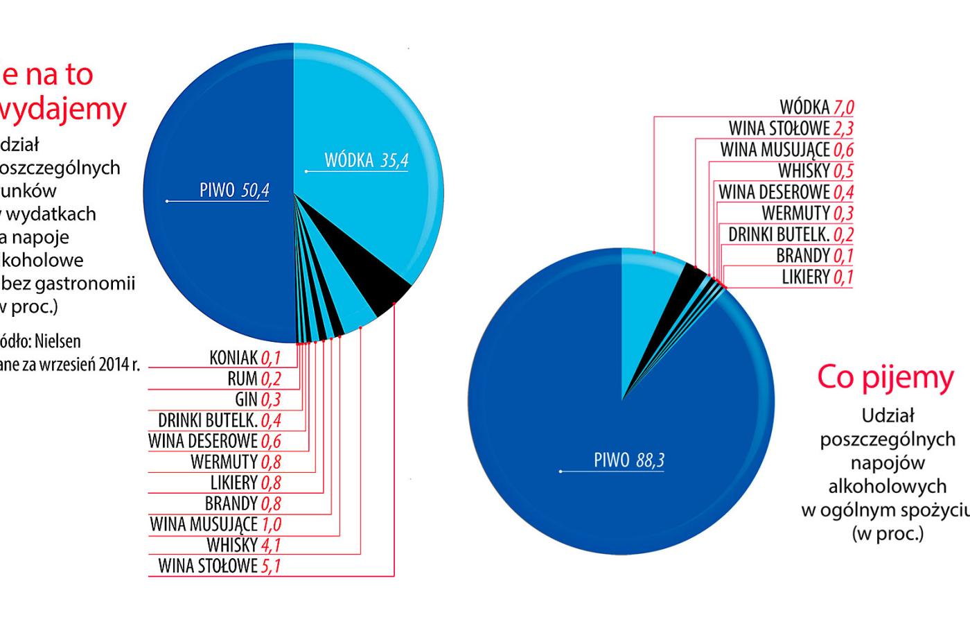 Polacy się nie oszczędzają, by tę dumę potwierdzać czynem. W 2013 r. wypili 224 mln l wódki za ponad 10 mld zł. To ponad 35 proc. naszych wydatków na napoje alkoholowe. – W przeliczeniu na czysty alkohol pijemy jednak mniej niż większość obywateli UE. Na jednego mieszkańca powyżej 15 roku życia wypada 10,1 l rocznie, podczas gdy średnia UE to 10,7 l – podkreśla prezes Związku Pracodawców Polski Przemysł Spirytusowy Leszek Wiwała.