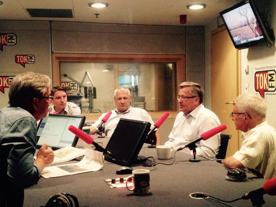 Były prezydent Bronisław Komorowski był gościem Poranka Radia TOK FM. Przepytywali go Jacek Żakowski (gospodarz audycji) oraz publicyści: Wiesław Władyka (POLITYKA), Tomasz Wołek i Tomasz Lis.