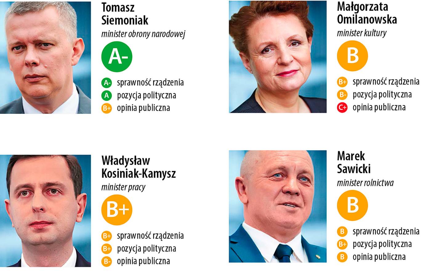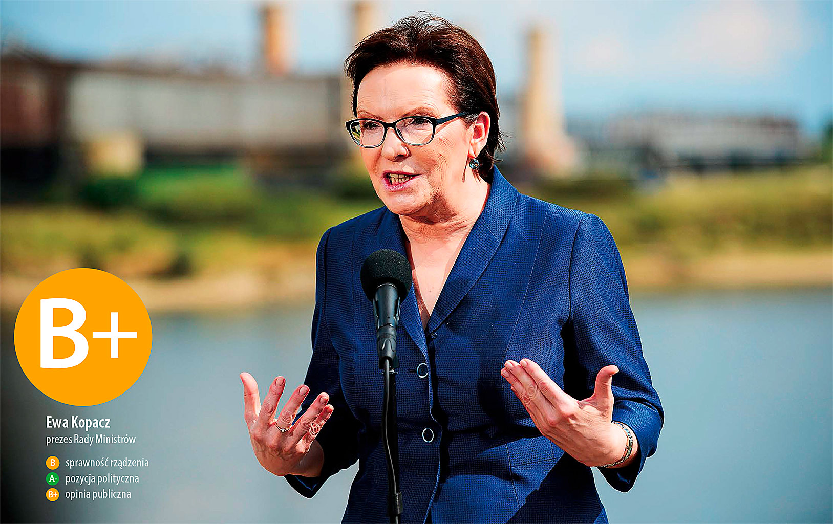 „Wszystko się musi zmienić, żeby wszystko zostało po staremu” – ten cytat z „Lamparta” Giuseppe di Lampedusy najlepiej oddaje sytuację Ewy Kopacz. Z jednej strony premier jest dziś dużo silniejszym politykiem niż rok temu, z drugiej – po klęsce Bronisława Komorowskiego w wyborach prezydenckich Platforma jest dużo słabszą partią, poparcie dla rządu też znacząco spadło. Stąd ocena samej premier pozostała niezmieniona – B+ w naszym ratingu.