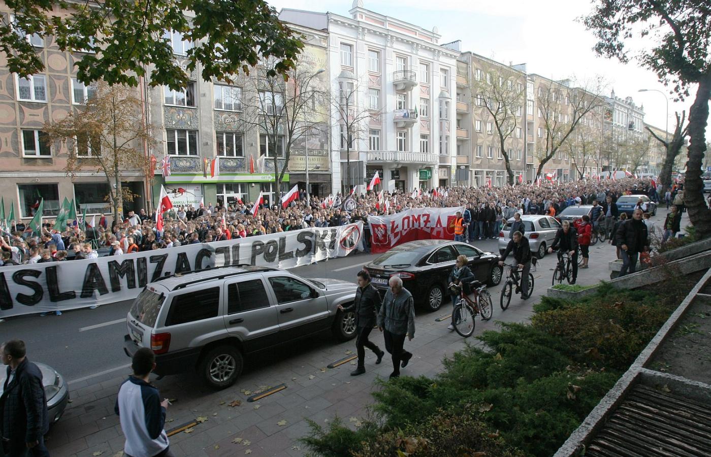 Wołamy po trzykroć: opamiętaj/się Polaku/Polska tylko/dla rodaków! Jeszcze przed wymarszem jesteśmy proszeni przez organizatora z Obozu Narodowo-Radykalnego, byśmy nie palili rac. Mamy też nie wznosić haseł na własną rękę, wyłącznie te, które inicjują organizatorzy. A oni inicjują: naszą drogą nacjonalizm!