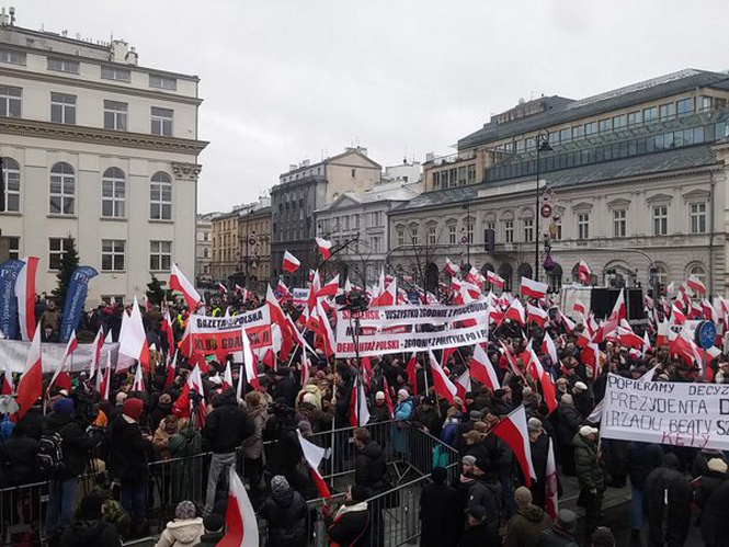 Jarosław Kaczyński odniósł się też do wczorajszego marszu w obronie demokracji, który przeszedł sprzed gmachu Trybunału Konstytucyjnego pod Pałac Prezydenta. Stwierdził, że wraca sytuacja z 2006 i 2007 roku – opozycja działa bez ograniczeń, atakuje rząd, obraża prezydenta. – To nie są ludzie, którzy mają sprawne głowy. To nie są ludzie, którzy myślą. Tu są ludzie, którzy myślą – mówił Kaczyński. – Dziś nie ma zagrożenia demokracji. Zagrożenie demokracji owszem było, ale za rządów Platformy Obywatelskiej.