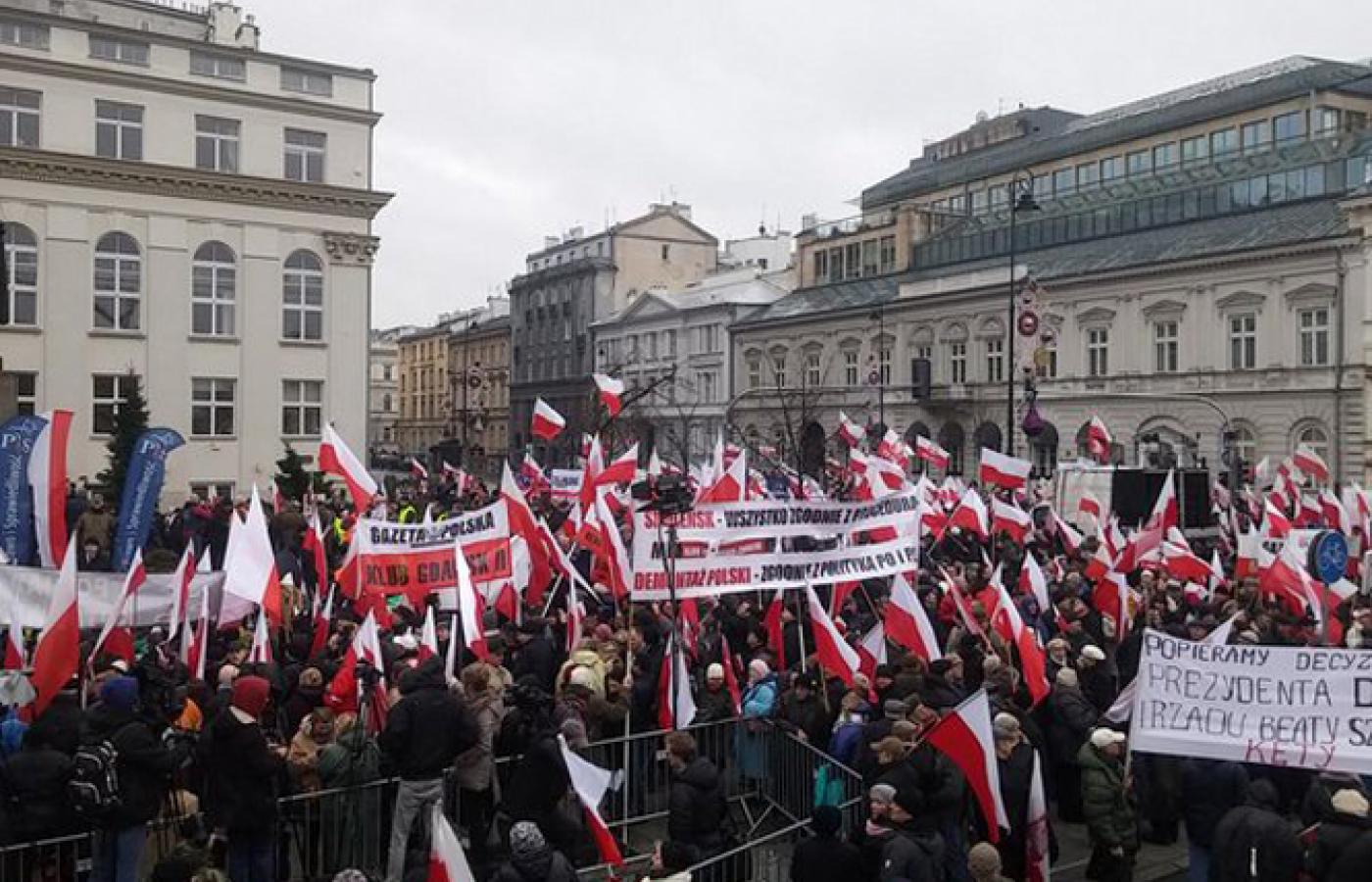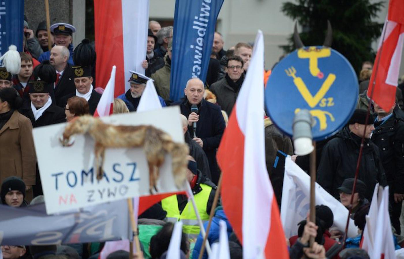 Ostatnim punktem marszu PiS było przemówienie Jarosława Kaczyńskiego przed siedzibą Trybunału Konstytucyjnego. Prezes PiS stwierdził, że w Polsce trwa aktualnie wielki spór. – Warto odpowiedzieć sobie na pytanie: o co w gruncie rzeczy chodzi? Ci, którzy byli tutaj wczoraj i inni, mówią, że chodzi o wypełnianie przez Trybunał Konstytucyjny jego przewidzianej przez prawo roli. To żart. Sędziowie Trybunału, w tym prezes, osobiście brali udział w tworzeniu ustawy, o której sami musieli powiedzieć, że złamała konstytucję, łamią nieustannie procedury, wydają arbitralne, bezpodstawne wyroki – mówił Kaczyński.