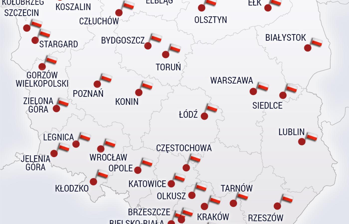 Mniejsze protesty odbyły się w ponad trzydziestu miastach Polski, ale też za granicą, m.in. w Wiedniu i Paryżu. Gdzieniegdzie próbowali je zakłócić narodowcy, którzy – tak jak w Olsztynie – deptali flagi KOD i UE. Zostali spisani przez policję.