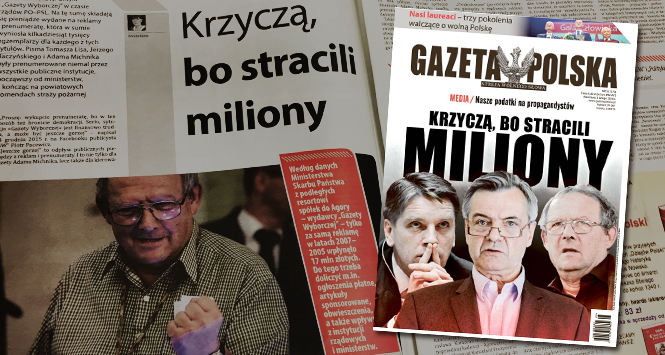 „Gazeta Polska” pisze na okładce: „Nasze podatki na propagandystów. Krzyczą, bo strącą miliony”. Obok zdjęcia tych, co stracą: redaktorów naczelnych Tomasza Lisa, Adama Michnika i Jerzego Baczyńskiego. Tezę ilustrują dane Parlamentarnego Zespołu ds. Obrony Wolności Słowa (to taki organizacyjny klon Zespołu Macierewicza). Dane są poruszające: otóż za walkę z Kaczyńskim PO płaciła gazetom państwowymi ogłoszeniami. „Publikowanie ich w pismach krytycznych wobec rządu było uznawane za brak lojalności”. W latach 2008–2013 „z tygodników najwięcej rządowych pieniędzy – ponad 603 tys. zł – dostała POLITYKA. Jej dziennikarze prześcigają się w zarzucaniu Kaczyńskiemu autorytarnych inklinacji” (cytat „Wprost”). Jest oczywiste, że POLITYKA, „GW”, „Newsweek” wykonywały rządową propagandę i krytykowały PiS za pieniądze. Nędza moralna tych mediów jest porażająca. A teraz atakują nowe władze, bo „są przerażeni, że nagle, pozbawieni rządowej kroplówki, będą musieli sobie radzić na wolnym rynku” („Gazeta Polska”, „Wprost”).
