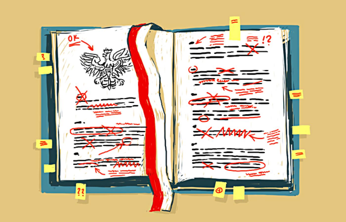 W rozpędzie ku przyszłości Jarosław Kaczyński zapowiedział zmianę konstytucji (a Kukiz'15 ogłosił, że chętnie podejmie na ten temat rozmowy). Na razie zaczną się prace przygotowawcze, co oczywiście – łatwo to przewidzieć – nie będzie przeszkadzało w gmeraniu przy konstytucji metodą już praktykowaną, a więc poprzez przyjmowanie przez większość rządową ustaw faktycznie naruszających obowiązujący porządek konstytucyjny. I nieustanne nieprzyjmowanie do wiadomości orzeczeń Trybunału Konstytucyjnego, zasadniczo krytykujących treść tych ustaw oraz tryb ich przyjmowania.