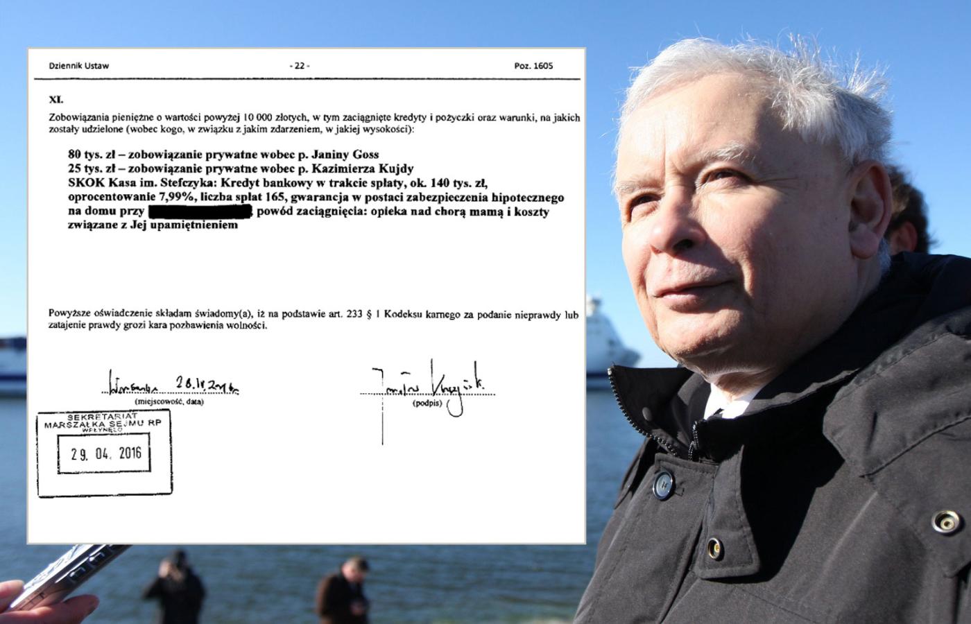 Na stronach sejmowych opublikowano dziś oświadczenia majątkowe posłów. Okazuje się, że Jarosław Kaczyński wciąż spłaca dwa, jak napisał w swoim oświadczeniu, „zobowiązania prywatne”. 80 tys. zł wobec Janiny Goss i 25 tys. zł wobec Kazimierza Kujdy.