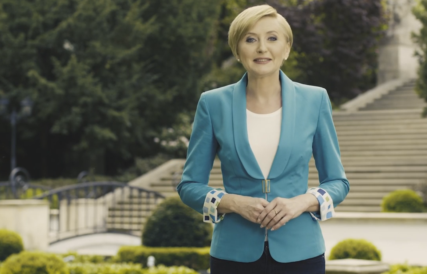 Nagrano też wersję polską zaproszenia, wygłoszoną wspólnie przez Pierwszą Parę, oraz angielską, w której znajomością języka wykazał się Andrzej Duda. Co ciekawe, pani prezydentowa do występów zmieniła przebranie: występuje w ceglastym kostiumie i w morskim żakiecie. Pan prezydent się nie przebierał, na obu nagraniach wystąpił w tej samej koszuli, garniturze i krawacie. Tak jakby tym strojem znów chciano podkreślić, że Agata Kornhauser-Duda jest niezmiennie elegancka i stylowa.