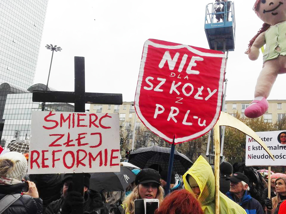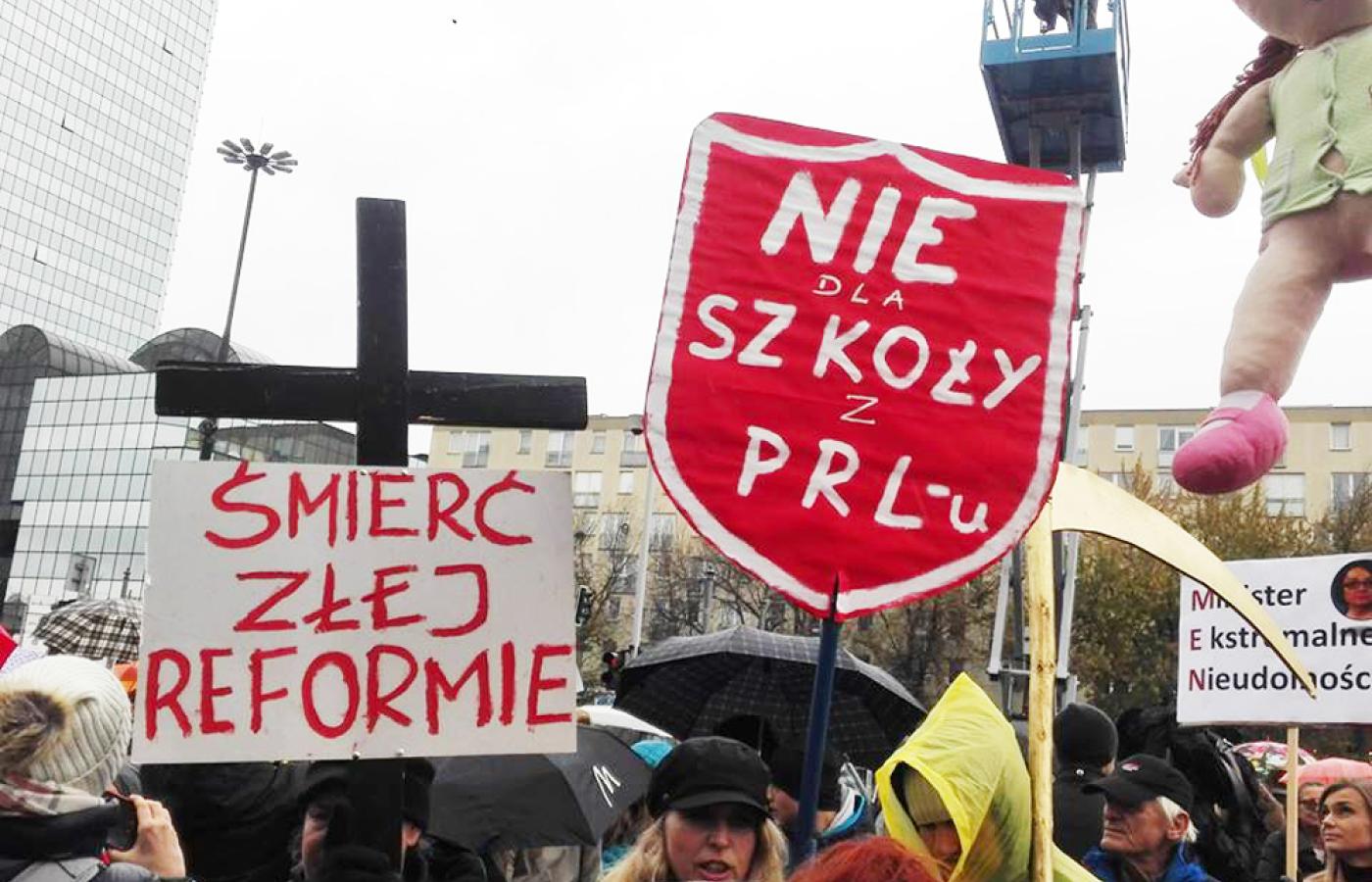 – PiS nie niszczy oświaty. PiS niszczy państwo i chce sobie wychować podporządkowanych i myślących, jak oni chcą obywateli. A wtedy będą rządzić zawsze i po wsze czasy – mówili zebrali w Warszawie nauczyciele. – Poprzednia reforma edukacji była prowadzona przez 17 lat, a ta przez 7 miesięcy. Jakiej jakości możemy oczekiwać w polskiej szkole? To nas bardzo niepokoi – dodawali inni.