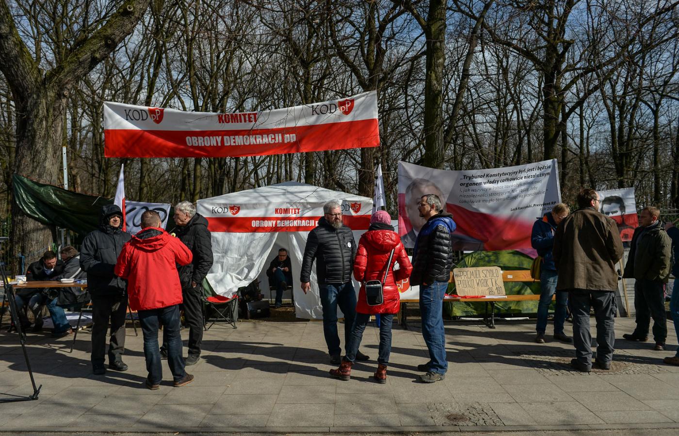 Pierwszy namiot stanął w Alejach Ujazdowskich 10 marca. Postawili go Miszk, Henryk Sikora, Andrzej Brzozowski, Marek Macner i Maciej Bajkowski, wszyscy odstępcy z KOD. Z tej piątki został tylko Bajkowski, który teraz dzieli namiot z Obywatelami RP. Gdy go wydalili z KOD (za to, że na swoim prywatnym forum utworzył grupę dyskusyjną i zaprosił do niej na profilu KOD), założył z grupką znajomych Obywatelski Ruch Demokratyczny (ORD). Potem nawiązali współpracę z KOD PP Miszka i Jacka Parola (jego już na pikiecie nie ma, jak mówią, pożeglował w stronę Facebooka).