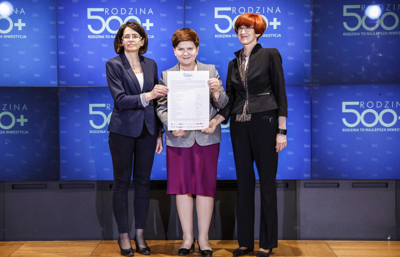 W lutym Sejm przegłosował najważniejszą obietnicę wyborczą PiS 500+ (za głosował PiS i PSL i część posłów Kukiz’15, PO wstrzymała się od głosu, Nowoczesna była przeciw), a już w kwietniu ruszyły wypłaty. PiS odtrąbił wielki sukces, ale wicepremier Mateusz Morawiecki na spotkaniu z sympatykami PiS szczerze powiedział o programie i jego kosztach: „W dłuższej perspektywie to nam nie zbuduje PKB. Państwu bardziej niż konsumpcja potrzebne są inwestycje i oszczędności. A przypominam, że 500+ jest na kredyt. Zadłużyliśmy się o dodatkowe 20 mld zł, bo chcemy promować dzietność. Jesteśmy we własnym gronie i nie musimy mówić sobie tylko pięknych słów”. W tym roku z budżetu poszło na program ponad 18 mld zł. Politycznie PiS nie dostał za 500+ sondażowej premii, ale utrwalił poparcie w swoim elektoracie. Tej miesięcznej wypłaty na dzieci nikt prędko nie odważy się skasować. O wzroście dzietności jeszcze nie można mówić, natomiast więcej kobiet odchodzi z pracy, bo 500+ skutecznie, szczególnie w wielodzietnych rodzinach, zastępuje niskie pensje w domowym budżecie.